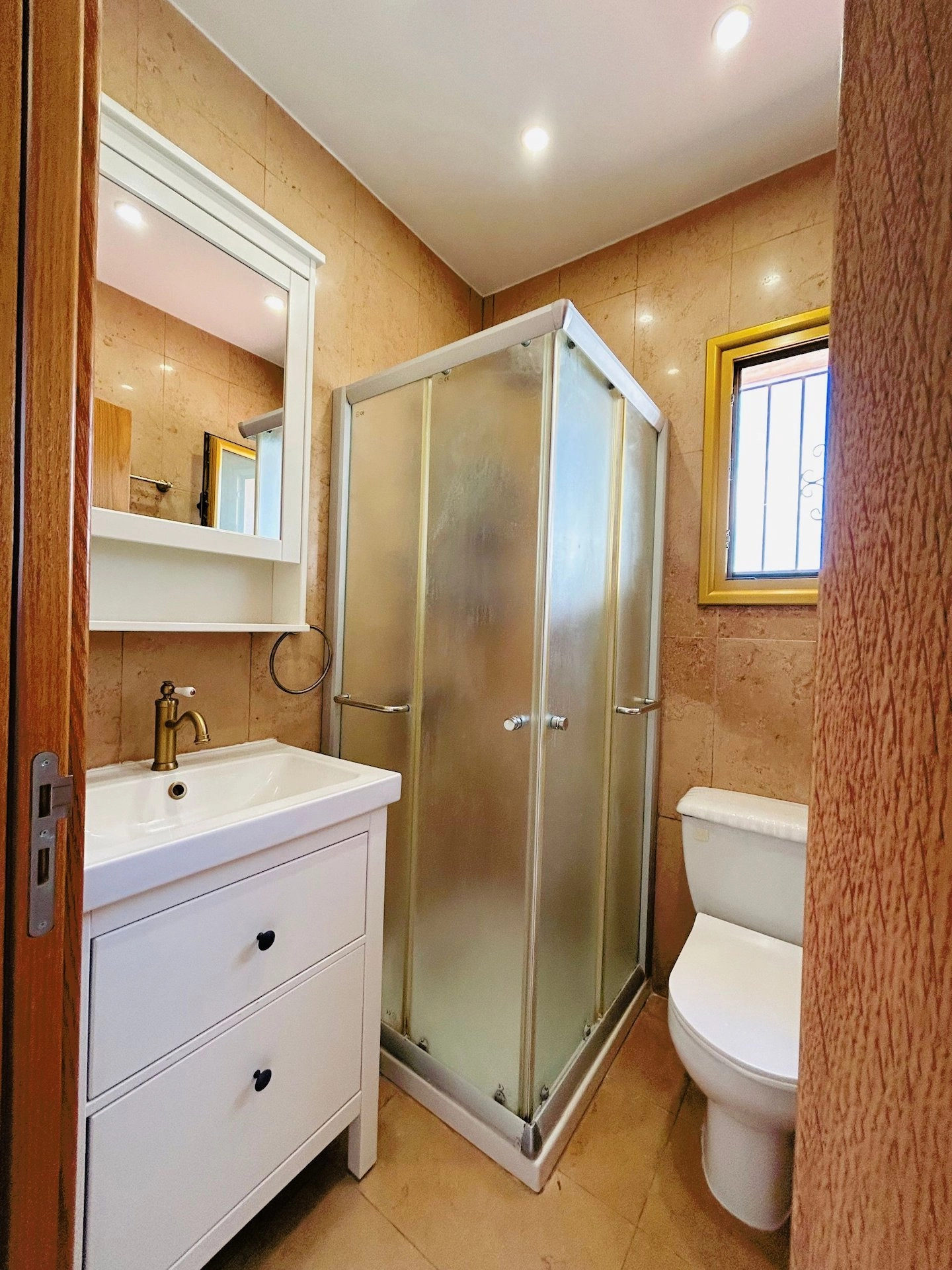 The house is built to the highest standards: marble floors, stairs and bathrooms, double glazed windows, security system (4 cameras), mosquito nets, thermal insulation, high-quality plumbing and kitchen appliances, onyx trim, crystal chandeliers, etc. There is a double sized garage and 5 kW solar panels that provide the house electricity.