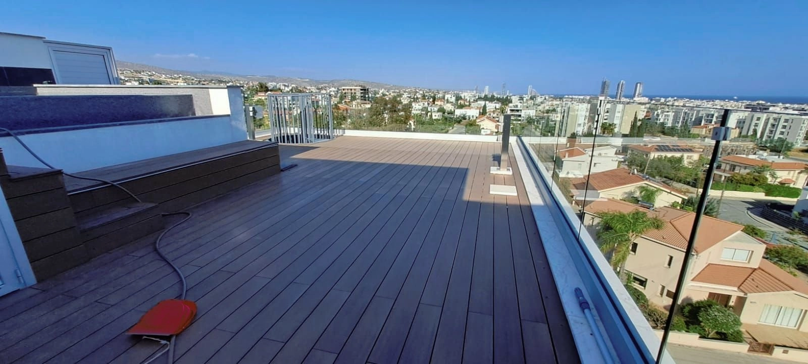 This luxurious three bedroom penthouse boasts a spacious indoor space with spectacular views of Limassol Town and the Mediterranean Sea. Offering stunning unobstructed views of Limassol's skyline and sea, it features two covered verandas and a rooftop, accessible both from inside the flat and the common areas. Residents can enjoy exclusive amenities such as an overflow swimming pool with jacuzzi jets, top-brand A/C units, underfloor heating, and floor-to-ceiling German insulated windows. The property also includes photovoltaic panels, electric blinds, and shutters, along with blackout curtains in the bedrooms. The Italian-manufactured kitchen is complemented by a Franke Vital tap providing filtered water, while the rooftop hosts a kitchenette, shower, and toilet. With a total of four toilets, two showers, and one bathroom, this apartment ensures convenience and comfort. Additional features include high-quality porcelain tiles, laminated parquet floors, ample power and connectivity points, hidden lighting in the living room, and spacious wardrobes. Security is prioritized with a covered private parking space, security flat entrance door, cameras in the parking area and building entrance, provision for a wireless alarm, and an entrance phone with full-color video. Residents also benefit from a storage room, electric gated entrance, and a landscaped garden. Situated in a prime and affluent location in the Agios Stylianos area of Limassol, just 1.3km from the beach, with easy access to the motorway and downtown, this property offers a luxurious and convenient lifestyle. Please call to schedule a viewing of this magnificent property.