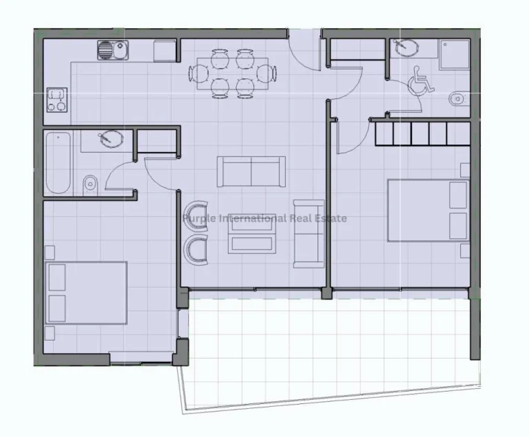 Exceptionally spacious 81m2,open plan kitchen and living area, two bedroom,family bathroom and guest toilet .There is also covered veranda 11sqm.