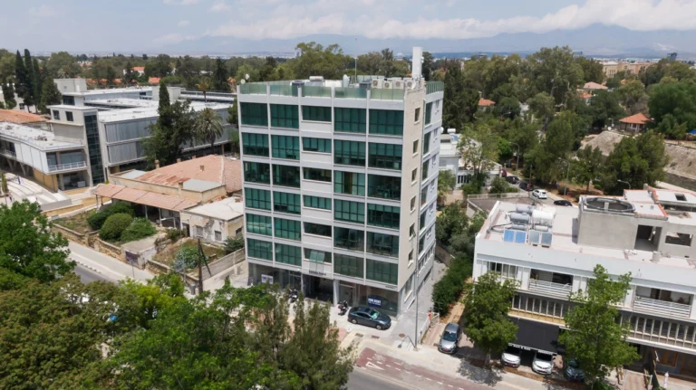 The luxurious office building is located in an excellent location in close proximity to the Supreme Court, the District Court, Town Planning and the House of Representatives – a prime location with direct access to the city center, Strovolos, and Engomi commercial centers.
