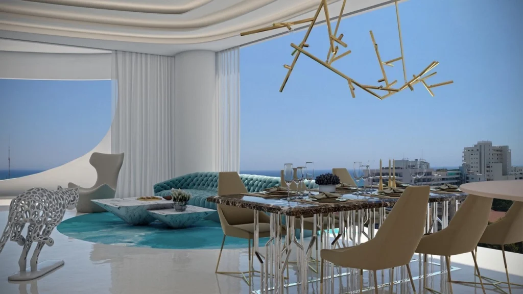 The highest building in Larnaca and conveniently situated on the main road of the most central intersection of the city, faces the Mediterranean Sea, Larnaca Marina and the Finikoudes; all just 10 minutes away from the Airport.