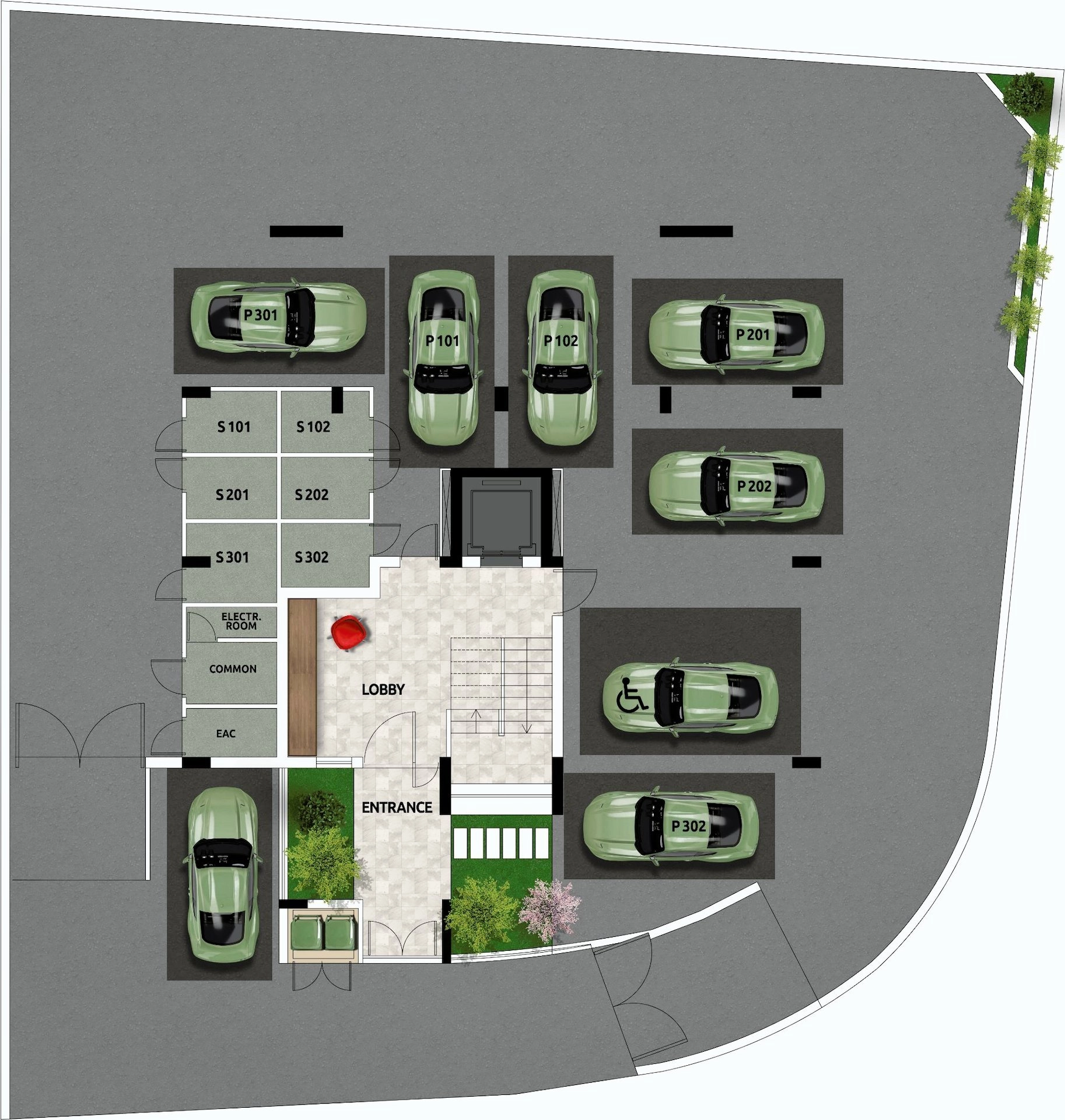 All apartments in this building come with covered parking and a storage room, as well as provisions for air conditioning units and electric heating. Additionally, a photovoltaic system for the common areas will significantly reduce electricity expenses.
