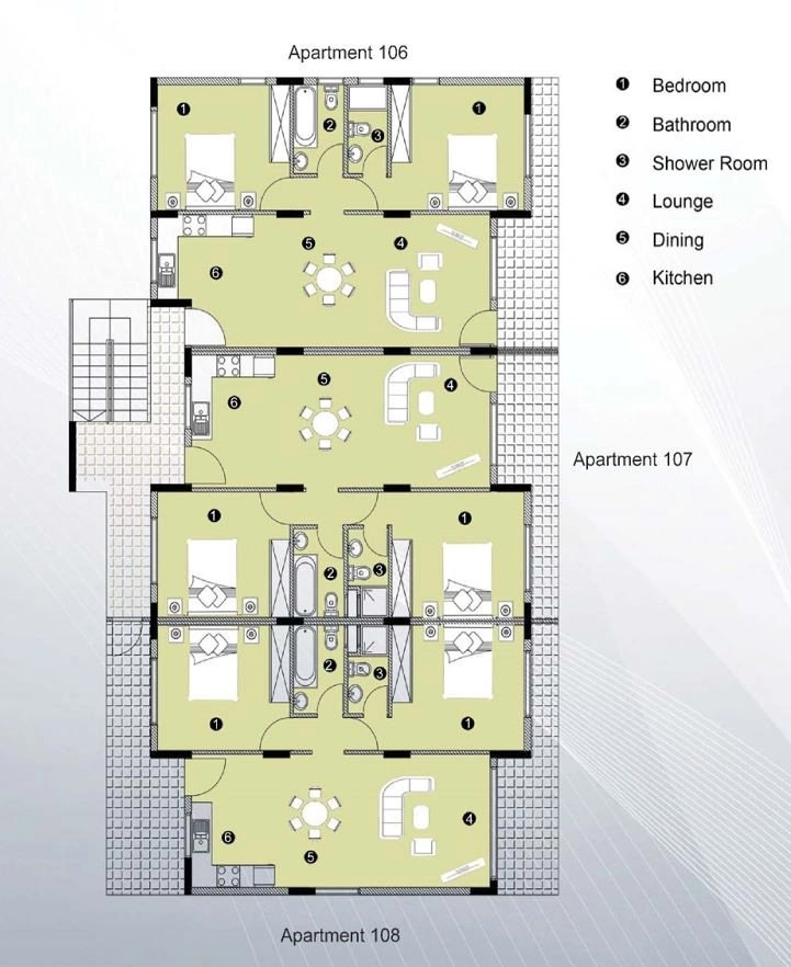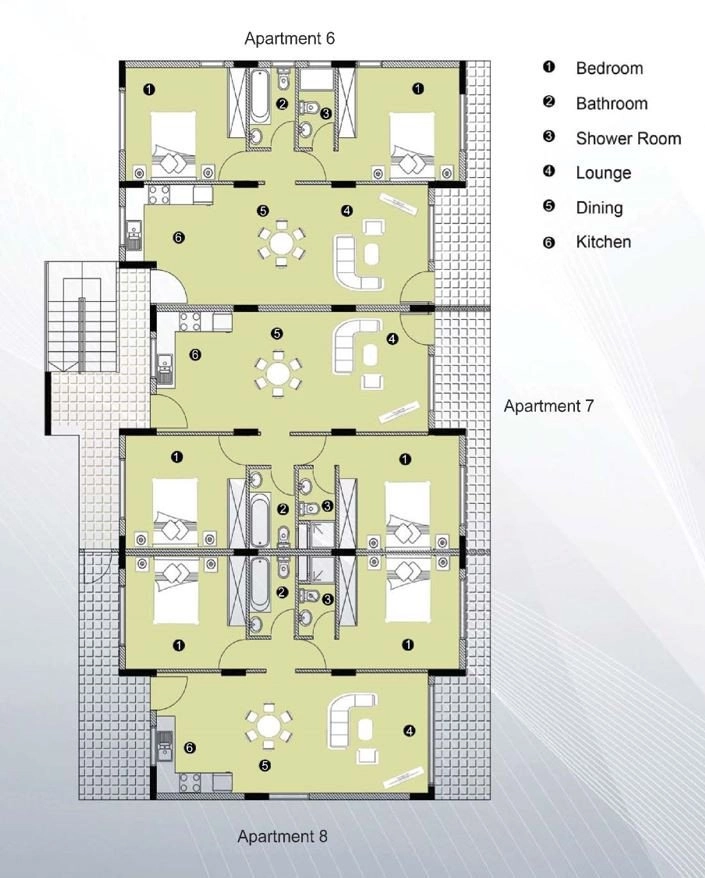 The luxurious project consists of three blocks blocks (BLK A= 10) + (BLK B= 6) +(BLK C= 8 ) = Total 24 apartment units of two bedroom apartments.