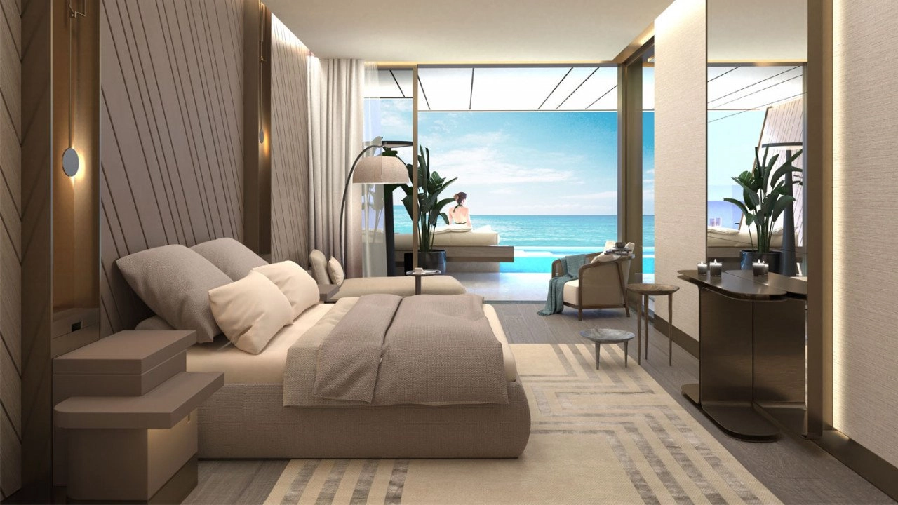The Two Bedroom Residence consists of 2 bedrooms, with en-suite bathroom or shower, an open plan kitchen and living room and guests WC. The master bedroom features a walk-in closet.