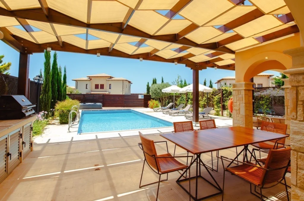 Beautiful 3-bedroom villa in Paphos, south-facing site offering fabulous sea views and is just a short stroll from the Village Square shops and restaurants and the sports and leisure amenities of the resort.