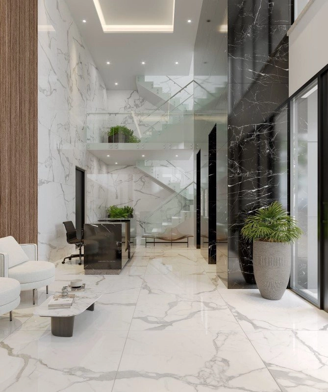 The project comprises of a ground floor office with mezzanine and lobby area at the entrance and 4 typical floors with Reception area.