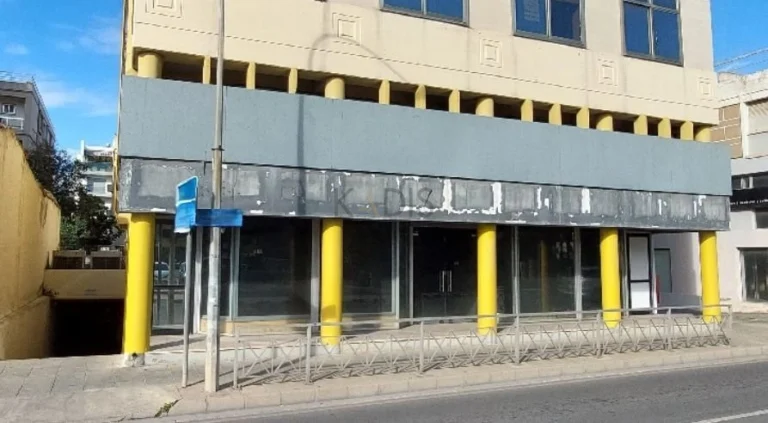 This is an incomplete shop on the ground floor of a nine storey building in Agios Antonios, Nicosia.