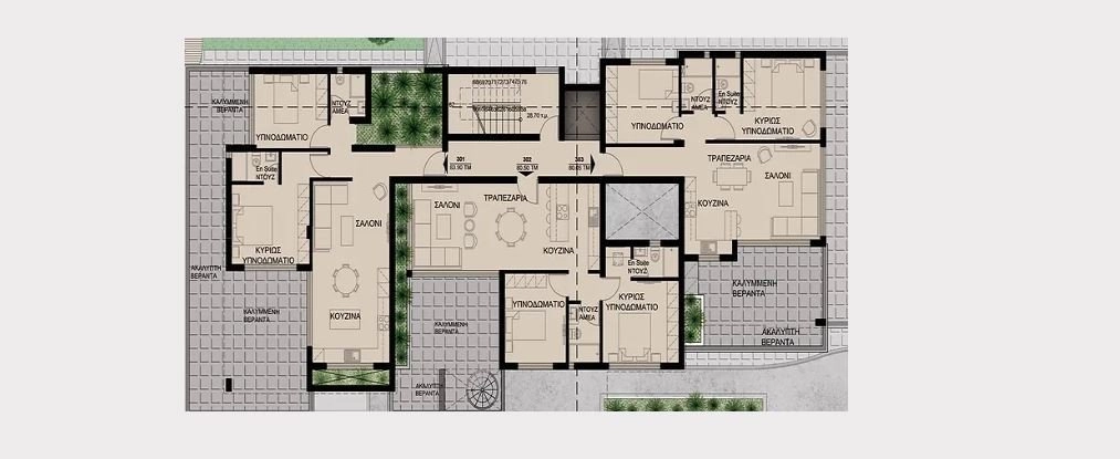 A cozy residential complex is located in Agia Fila. This quiet bedroom neighborhood is located on a hill overlooking the sea away from the noisy highways.