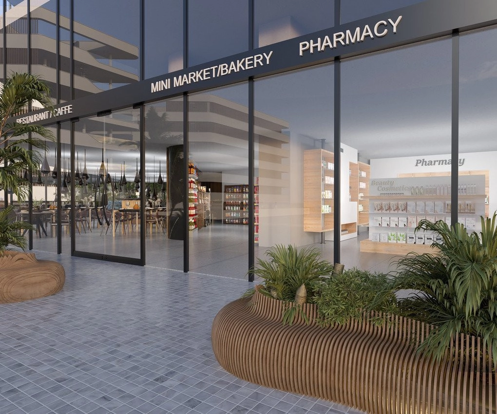 Also included within the complex: spa and fitness facilities, restaurant, cafe, pharmacy, bakery, mini market, covered parking, several common swimming pools, children’s playground.