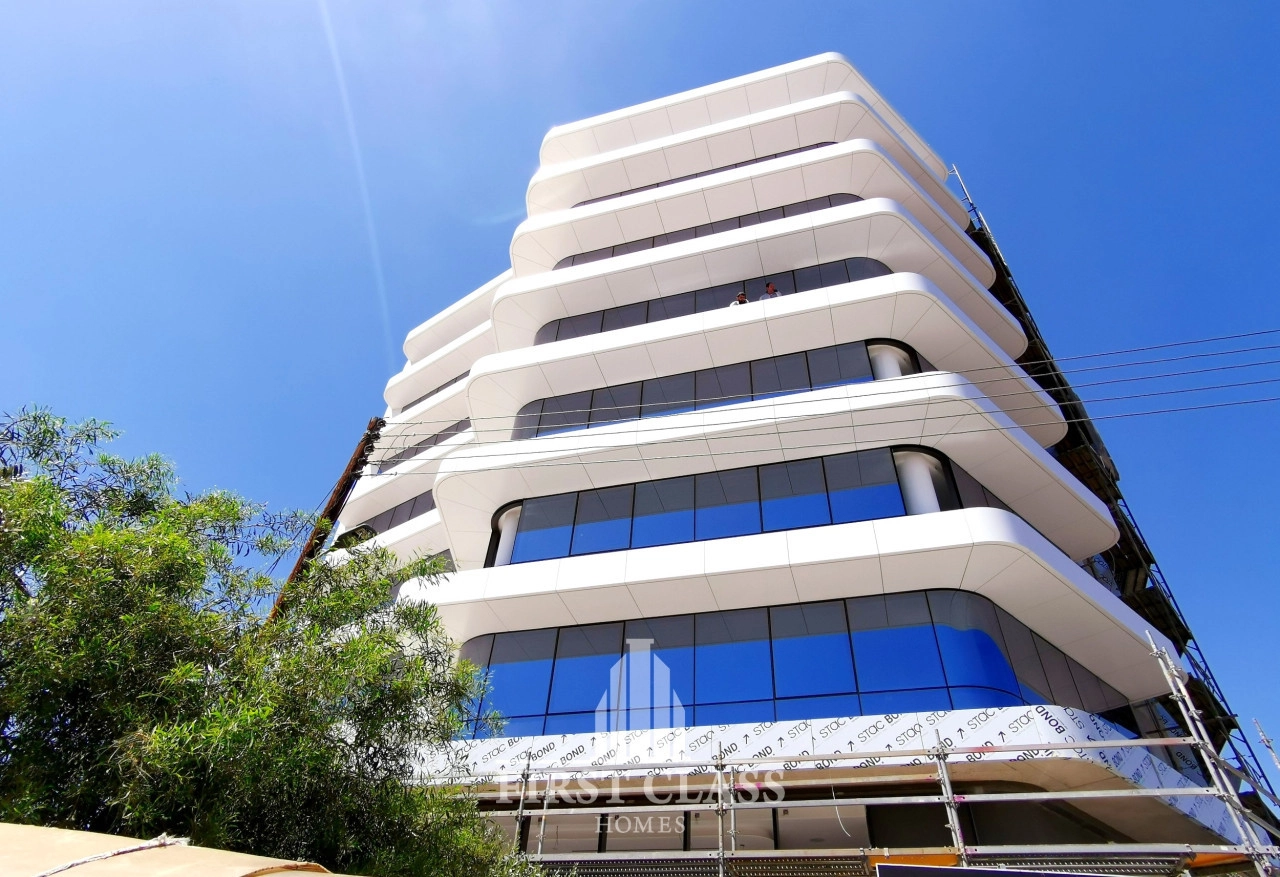 This prime location – alongside the main highway and adjacent to the Mesa Geitonia intersection –was the obvious choice for a building of such magnitude and visual presence. Accessibility is easy for both employees and clients from all Limassol suburbs as well as from Nicosia, Larnaca and Paphos. All commercial, government and municipal resources are within easy reach. And for convenience, many banking, shopping and dining establishments are close by.