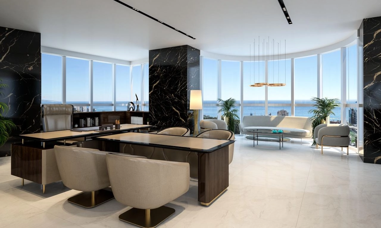 Office space for sale, located on the 1st floor of an ultramodern complex in the heart of Limassol. Energy-efficient glazing, private elevator and air conditioning system create a safe and comfortable working atmosphere. The property is part of a gated apartment complex. At the entrance to the building there is a luxurious lobby, a place for meetings with clients and guests, as well as a counter for requests and information on all issues. Concierge service, security. Innovative technologies in construction and the highest standards in interior design create a comfortable and cozy atmosphere. The building meets category A energy saving standards, facade solar panels will be used in the construction to save electricity, the BMS system for automatic and efficient management of communal areas and green areas of the complex. The extravagant design of the building, fully decorated with facade glass, highlights it and attracts attention. At the same time, the modern profile of the building merges with the rest of the district, showing that creative design can raise the urban lifestyle to a new level.