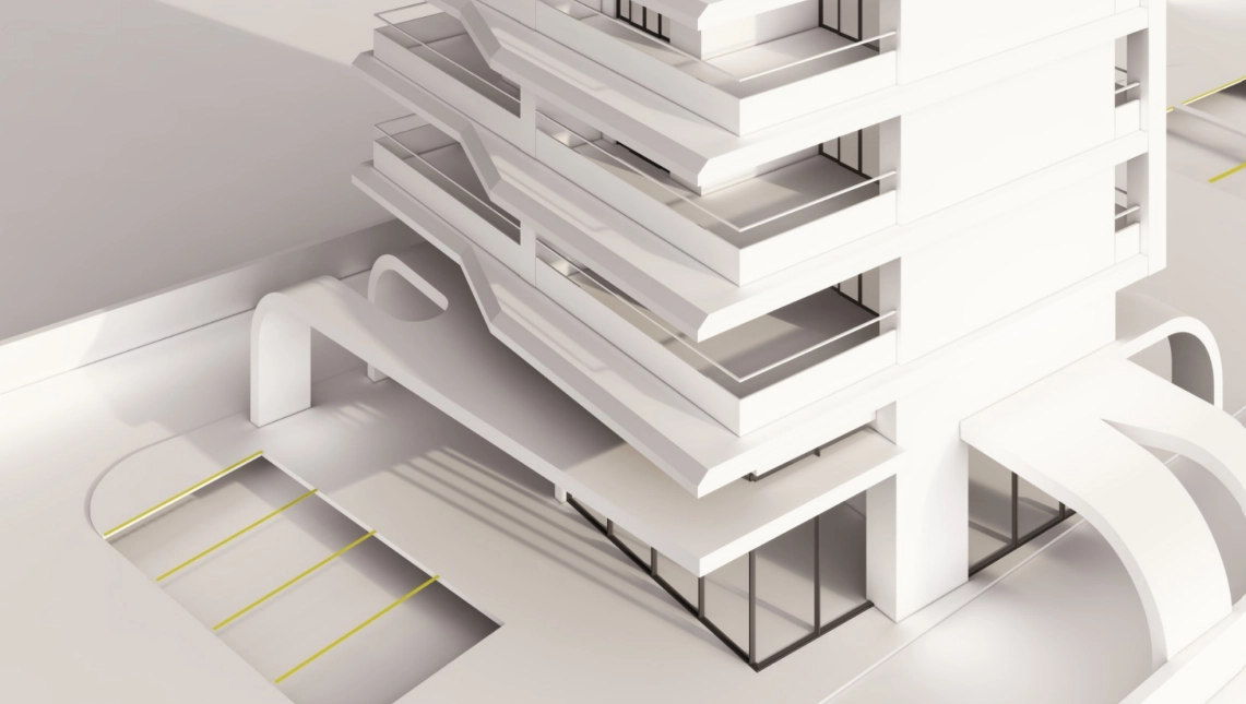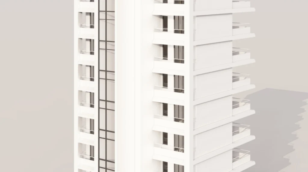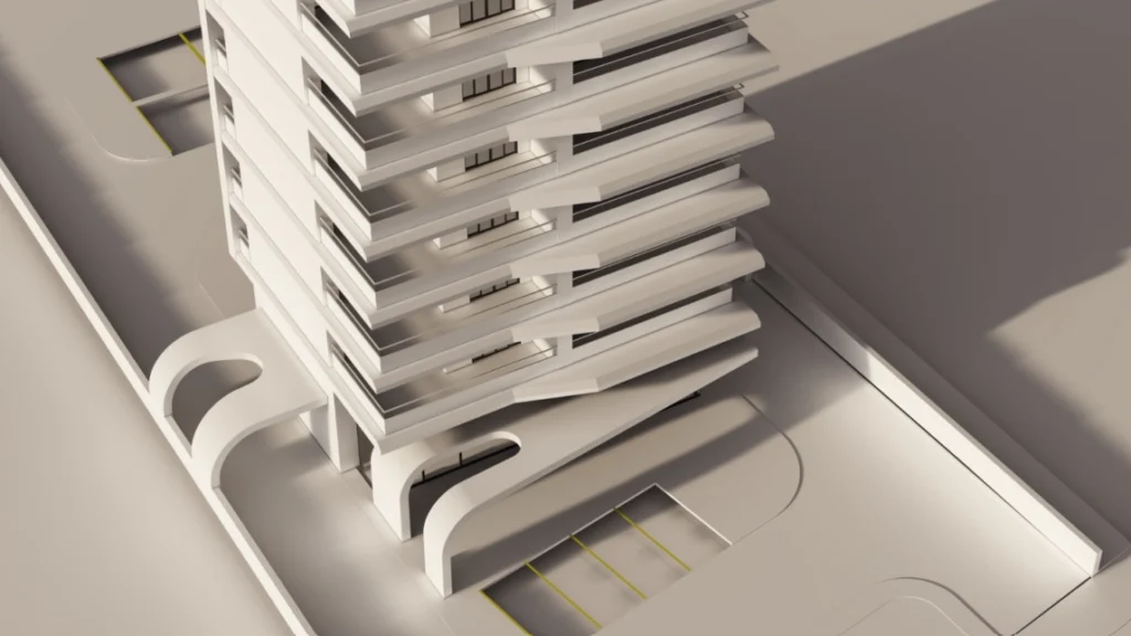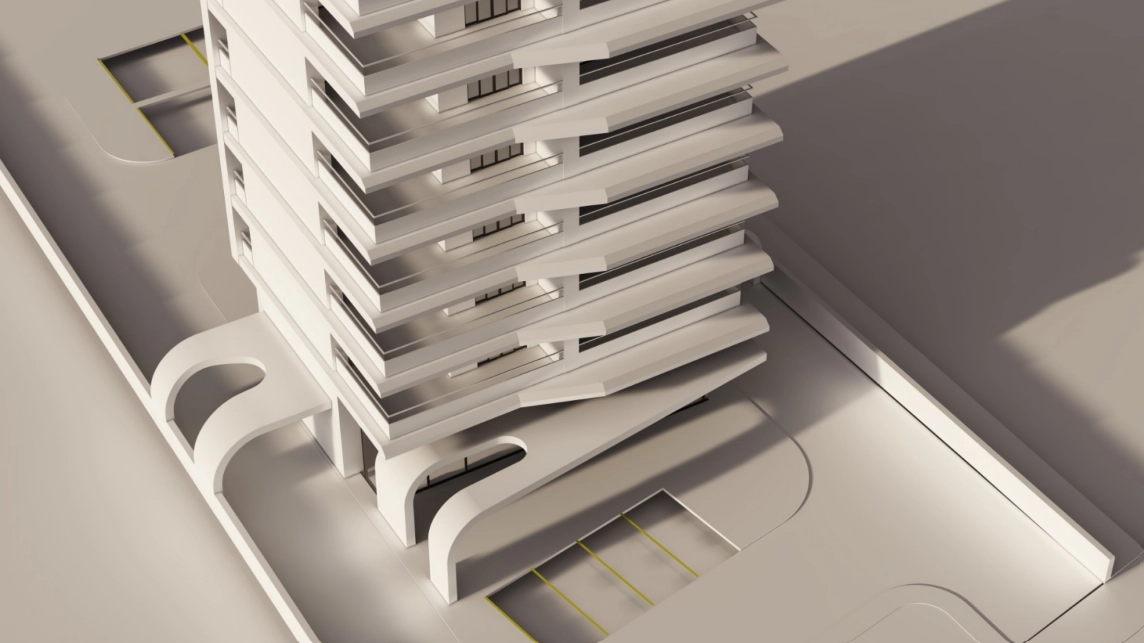 The ground floor consists of two retail shops and a welcoming lobby area, ideal for commercial activity and building access. The first floor and all subsequent floors up to the twelfth floor are designed with spacious layouts, each offering internal areas along with large covered verandas. The building is designed to provide functional floor plans, natural light, and open views, making it suitable for offices, serviced apartments, or a mixed-use concept.