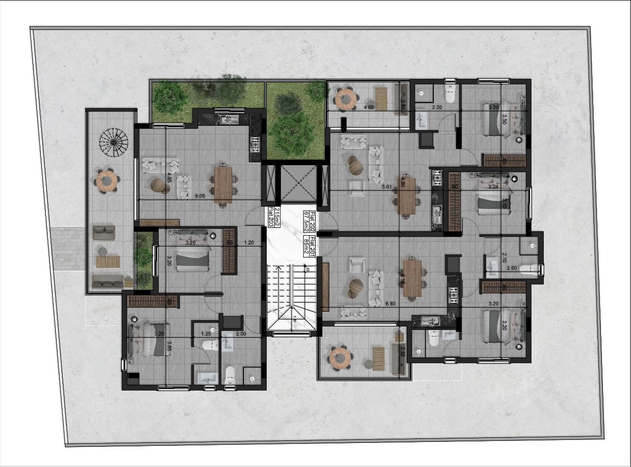 For sale a penthouse with a large roof terrace in the popular Livadia Livadia area. The modern design offers a comfortable layout – a living room with an open-plan kitchen and two comfortable bedrooms with bathrooms, as well as a covered veranda of 23m2. The city infrastructure is a few minutes away by car. The developer uses high-quality finishing materials and plumbing. Mo re is 7 minutes away by car.