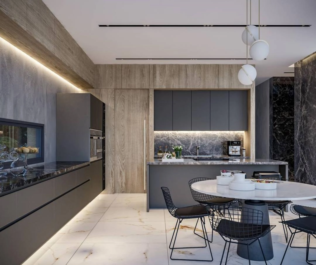 For sale off plan (15 months after signing the contract) 3-level villa with 5 bedrooms and 6 bathrooms in one of the most expensive and attractive areas of Limassol – Germasogeia. Situated in a quiet area on the east side of the city, on the Germasogeia riverbed, surrounded by breathtaking landscapes and many basic amenities such as supermarkets, cafes, bus stops, shops, banks, etc. This is an ideal place for those who want live in a quiet, peaceful and very picturesque area, which is also close to the main tourist attractions and has easy access to the highway. The villa has a gym, indoor heated pool, sauna, massage area, home cinema, lift, covered parking.