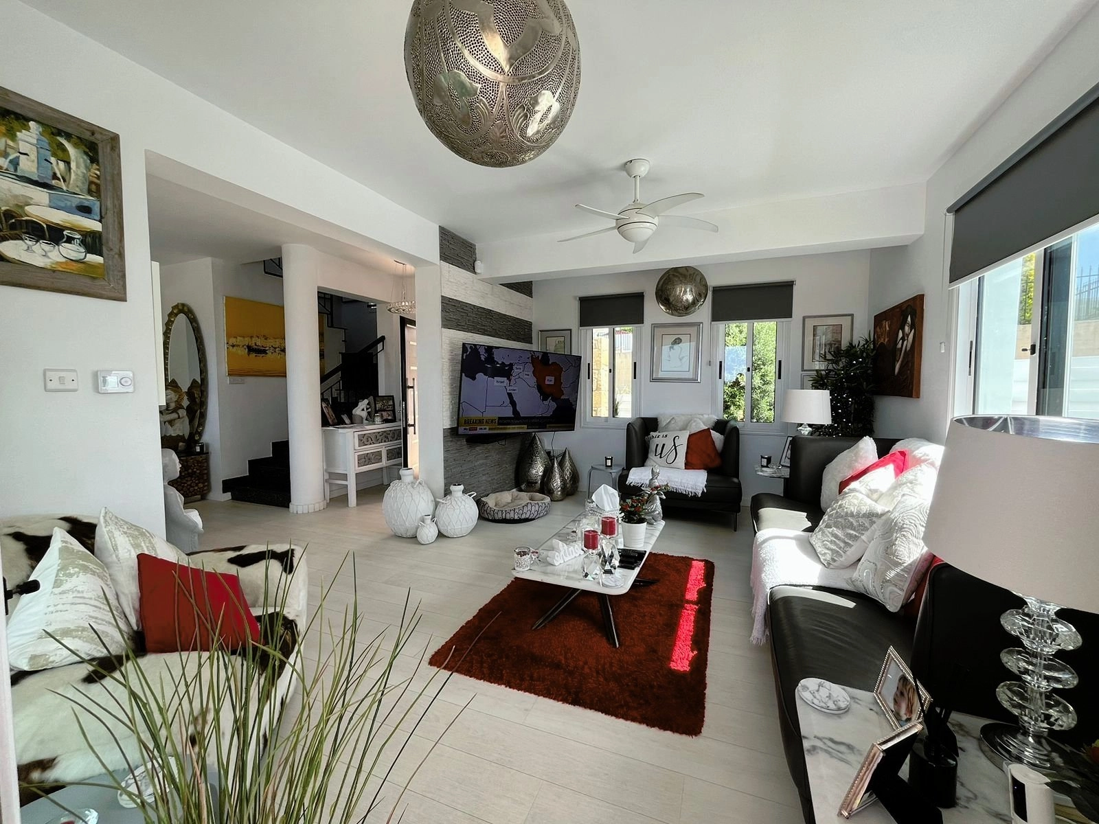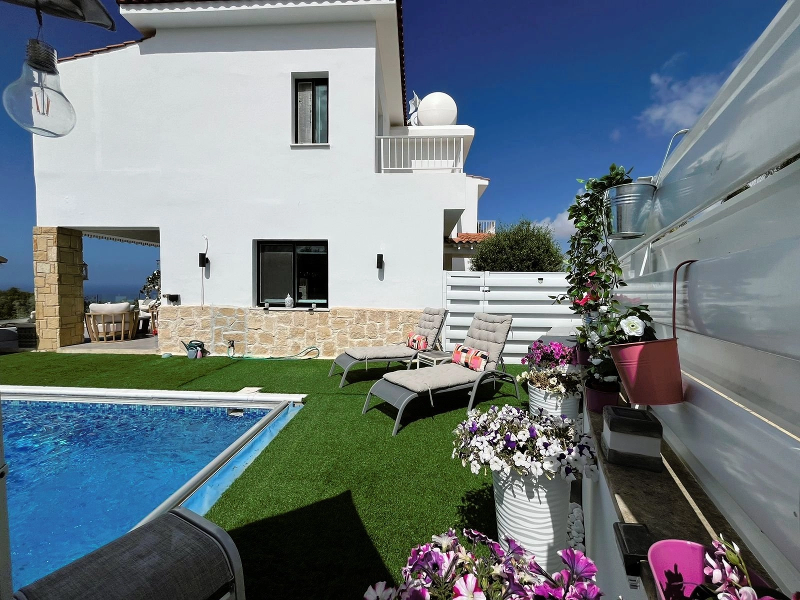 The villa has four bedrooms, three refurbished bathrooms, and an open-plan lounge, dining area, and kitchen, all renovated in the past year.