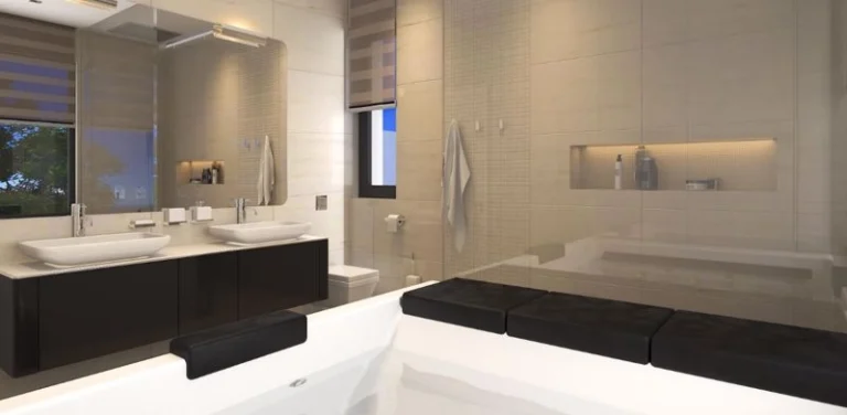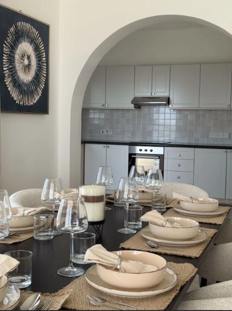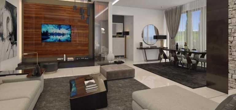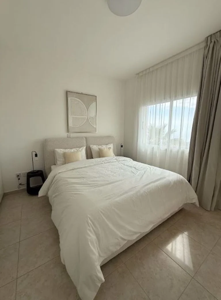Step inside to find a luxurious interior layout. Large floor-to-ceiling windows flood the rooms with warm natural light and showcase stunning views of the Mediterranean Sea. The spacious interiors feature modern and elegant designer finishes, such as Italian tiles and laminated wood flooring, creating a sophisticated and refined atmosphere.