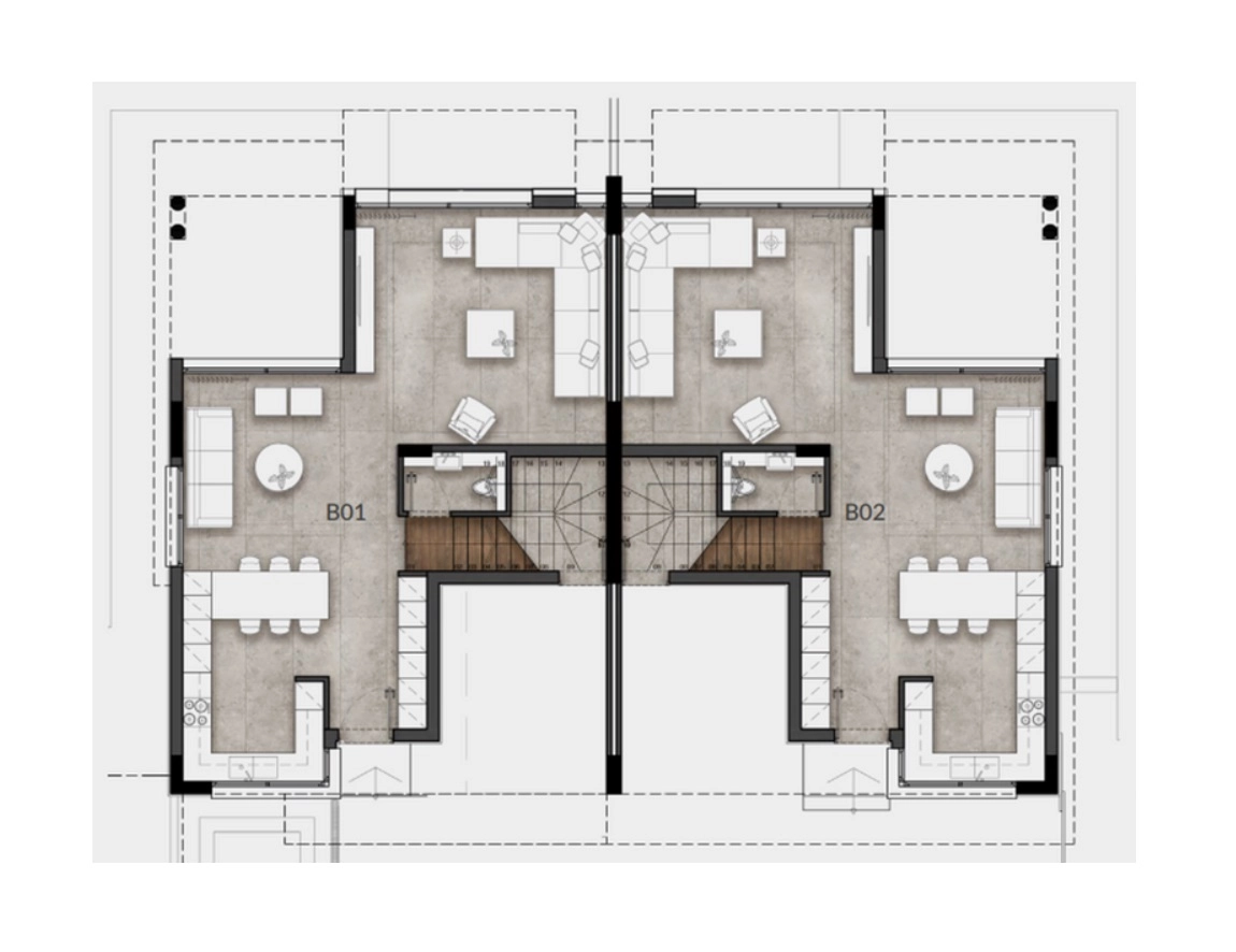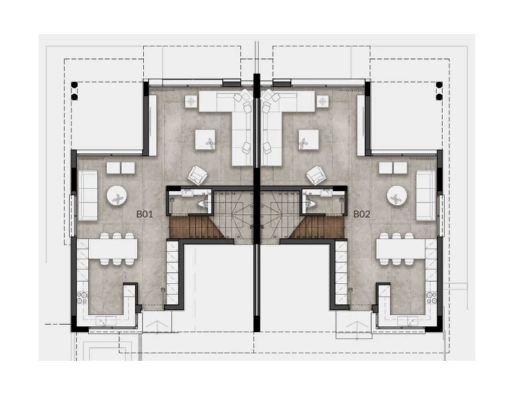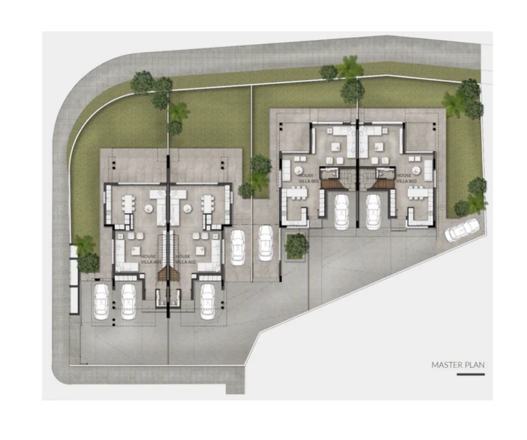 The new project, consisting of four two-storey villas on a plot of 1,387 m2, is located in one of the most attractive areas of Limassol, Agios Athanasios. Each villa consists of a spacious living room with a veranda overlooking the garden, a kitchen and a guest toilet on the ground floor, as well as four bedrooms on the second floor, each with its own bathroom. Each house is characterized by high energy efficiency, high-quality materials, modern design and thoughtful layout. The advantage of the location is the proximity to the highway, the city center, schools, hospitals and a busy tourist area. Indoor covered area: 202 m2, Covered terraces: 37 m2, Covered Parking: 48 m2, Total covered area: 287 m2, Private plot area: 256 m2, Common areas: 63m2, Total land area: 319 m2.