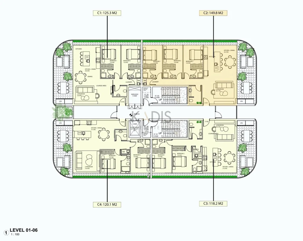 As a beacon of luxury, this project promises to redefine the standards of prime living. Boasting 8 meticulously crafted towers and a total of 280, 1, 2, 3 & 4 bedroom apartments, each exuding sophistication and opulence, this development offers a lifestyle of incomparable comfort and prestige. With foor-to-ceiling glazing adorning their facades, each tower offers panoramic views of the cityscape. Landscaped balconies grace every residence, merging urban living with natural beauty. At the estate’s centre lies a serene oasis—a central pool surrounded by 8,000m2 of lush landscaping.
