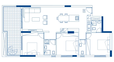 This apartment boasts a sustainable design with energy-efficient features, including a VRV cooling technology system, underfloor heating, and thermal insulation The property is equipped with an alarm system for added safety and security The interior showcases high-quality laminate floors, wall-mounted toilets, and walk-in showers, providing a touch of elegance to the space