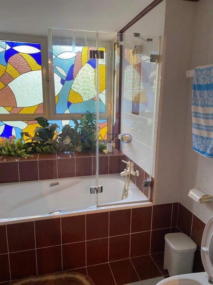 This four-bedroom house offers an internal area of 230 square meters and sits on a plot area of 649 square meters. In particular, the detached house has two floors, on the first floor, there is a spacious open-plan dining, kitchen, and living room area, and a guest toilet with a shower. On the first floor, the residents will find a master bedroom with an en-suite shower, three additional bedrooms, a family bathroom, and an attic/storage room. As a plus, this detached house comes with double-glazed windows, a fireplace, a solar water system, diesel central heating, air-conditioning units, a private garden area, and an uncovered parking area.