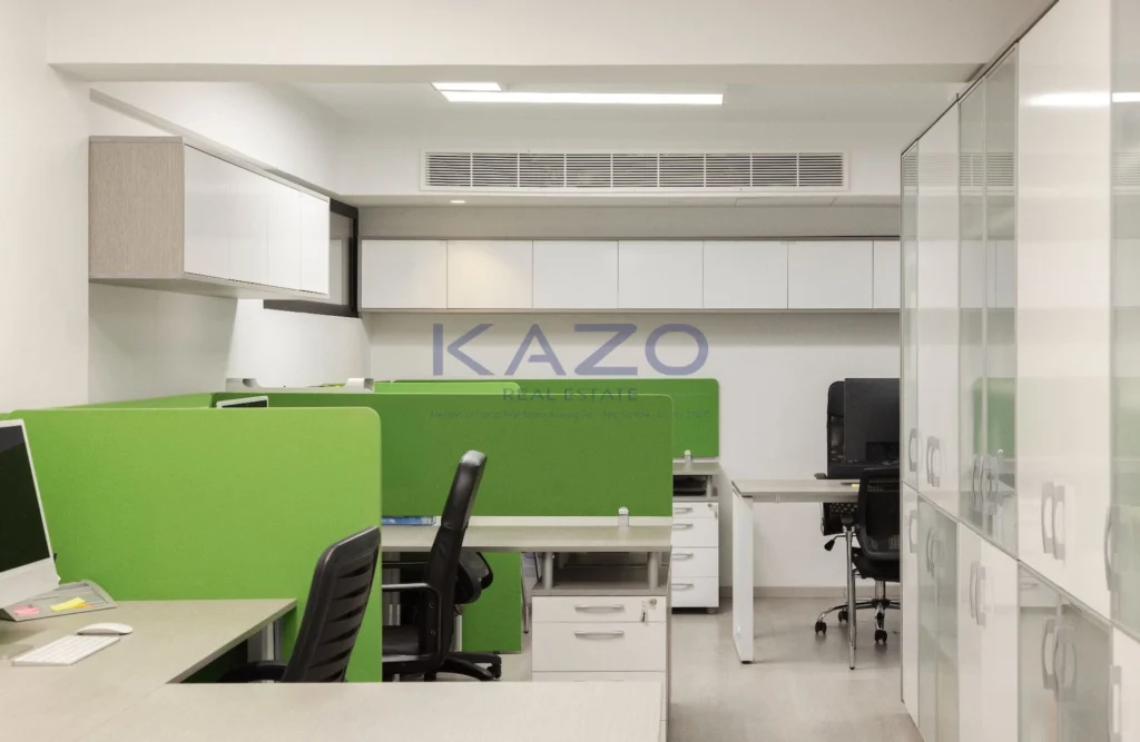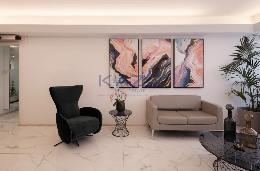 The commercial office space is divided into three levels offering a total area of 1,114 square meters. In particular, the office space consists of a ground floor of 320 square meters, a mezzanine level of 397 square meters, and a first level of 397 square meters. The office space currently is under renovation and comes with a controlled private parking space of 23 spots, two strong rooms, a security alarm system, and fantastic sea views (from the first-floor offices). This brilliant office space is located in the Neapolis area (Enaerios), within walking distance to the beachfront and amenities, such as kiosks, restaurants, gyms, cafes, parks, retail stores, public parking areas, public transportation, and more.