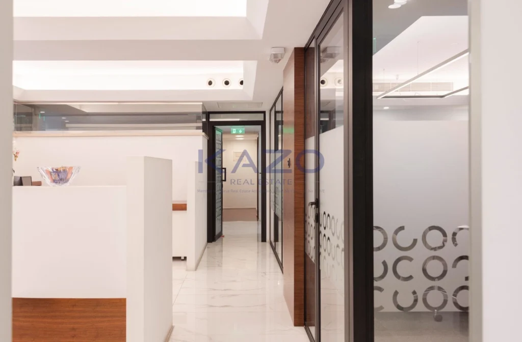 The commercial office space is divided into three levels offering a total area of 1,114 square meters. In particular, the office space consists of a ground floor of 320 square meters, a mezzanine level of 397 square meters, and a first level of 397 square meters. The office space currently is under renovation and comes with a controlled private parking space of 23 spots, two strong rooms, a security alarm system, and fantastic sea views (from the first-floor offices). This brilliant office space is located in the Neapolis area (Enaerios), within walking distance to the beachfront and amenities, such as kiosks, restaurants, gyms, cafes, parks, retail stores, public parking areas, public transportation, and more.
