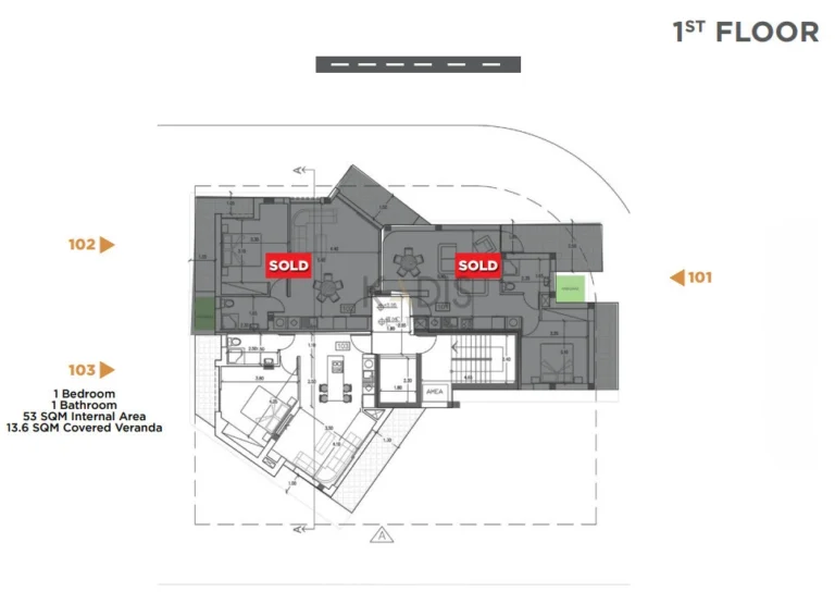 Introducing a brand new project, available for sale in Agios Tychonas area. The property covers 50 sqm of internal space and consists of a living room, an open plan kitchen, with provision for all essential appliances, one bedroom, and a bathroom. It is situated on the second floor of a three-story building and comes with one parking space and a storage unit.