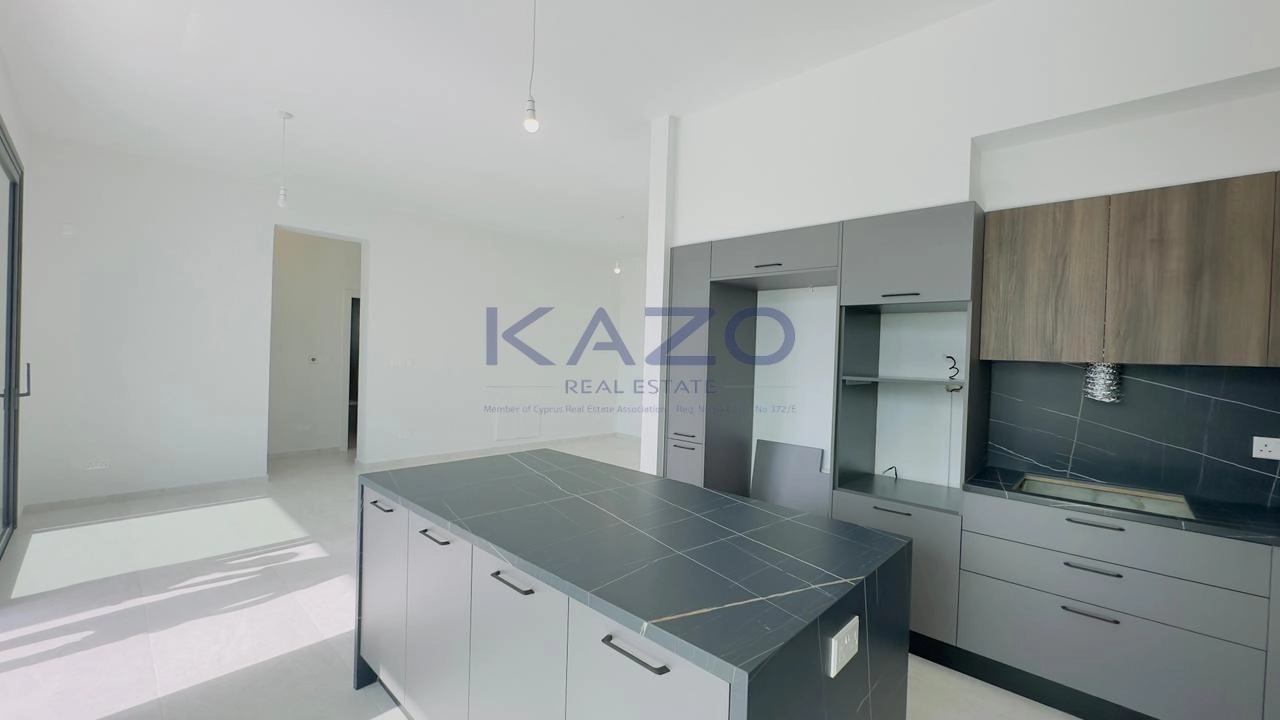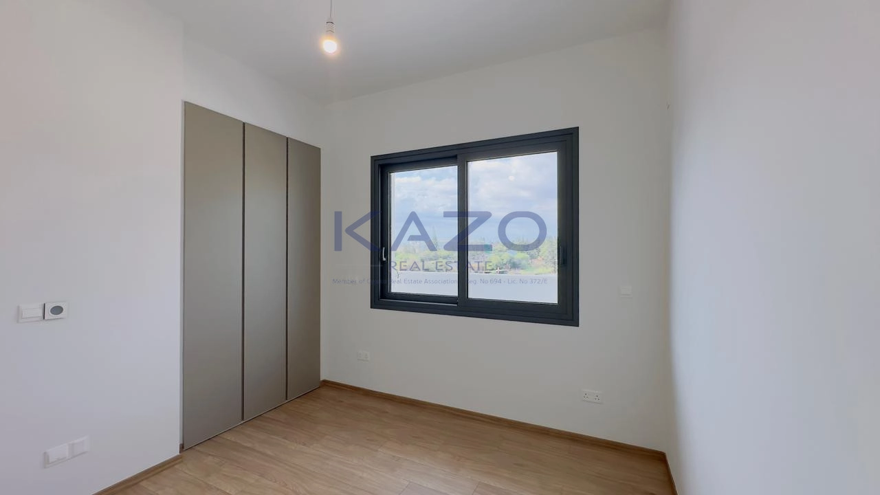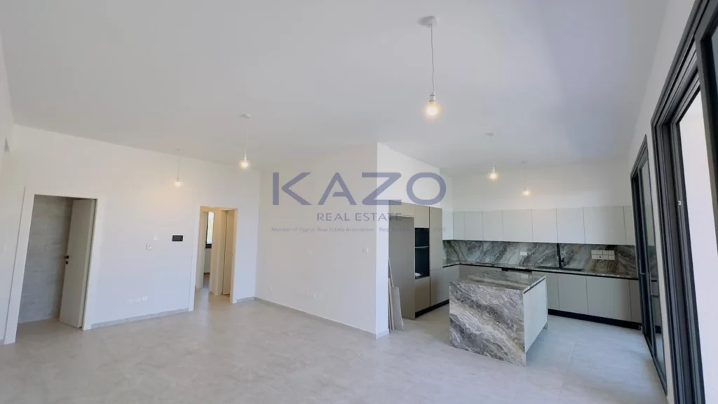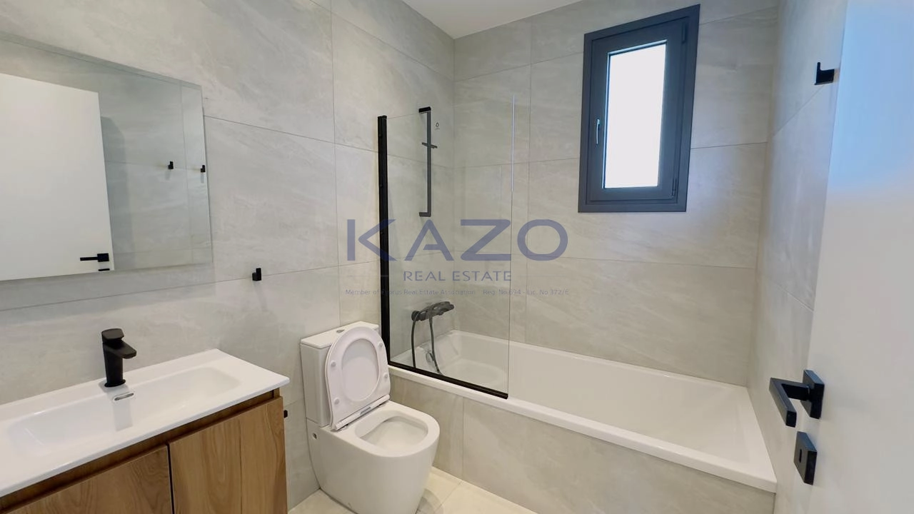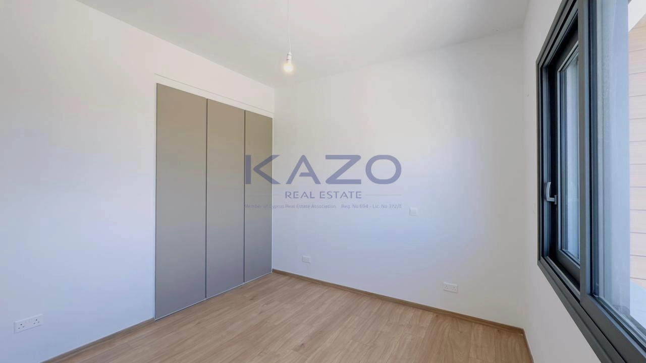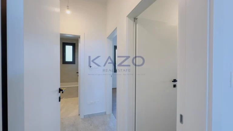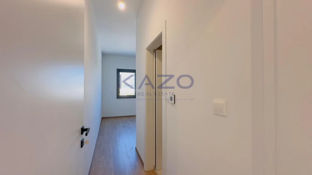 The three-bedroom apartment is located on the first level of a brand-new three-floor residential building estimated to be delivered in September 2025. In particular, the flat consists of an internal area of 125 square meters and an external area of 42 square meters, meaning a cozy open-plan layout living room, dining, and kitchen area, one guest WC, one family bathroom, one ensuite bathroom, and one covered veranda. In addition, the flat is offered with private covered parking with an entrance door with an intercome-controlled, storage room of 6 square meters on the ground level of the building, double-paned windows, a solar water system, and access to the common swimming pool, children’s playground and store rooms