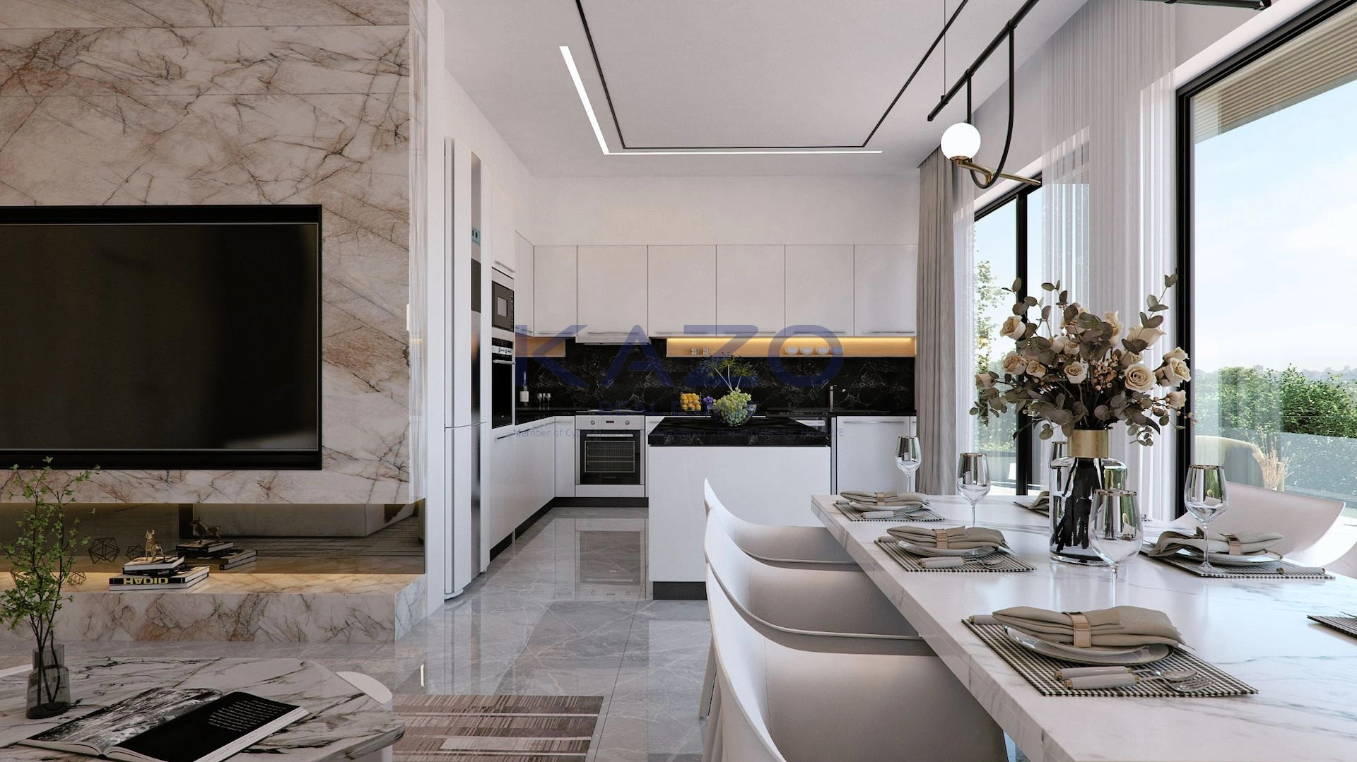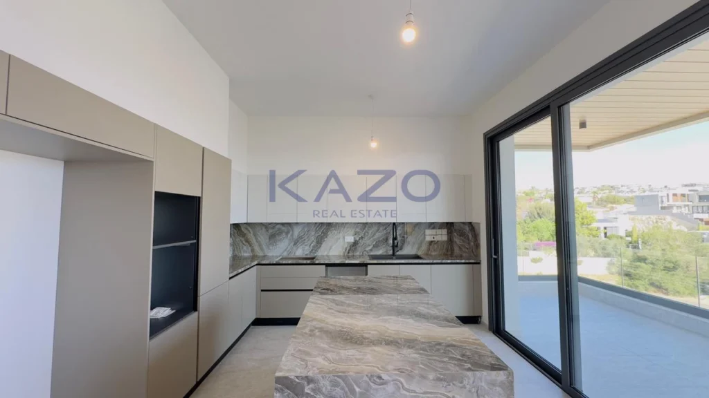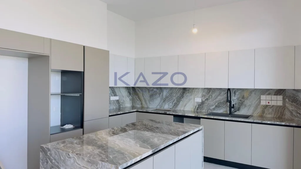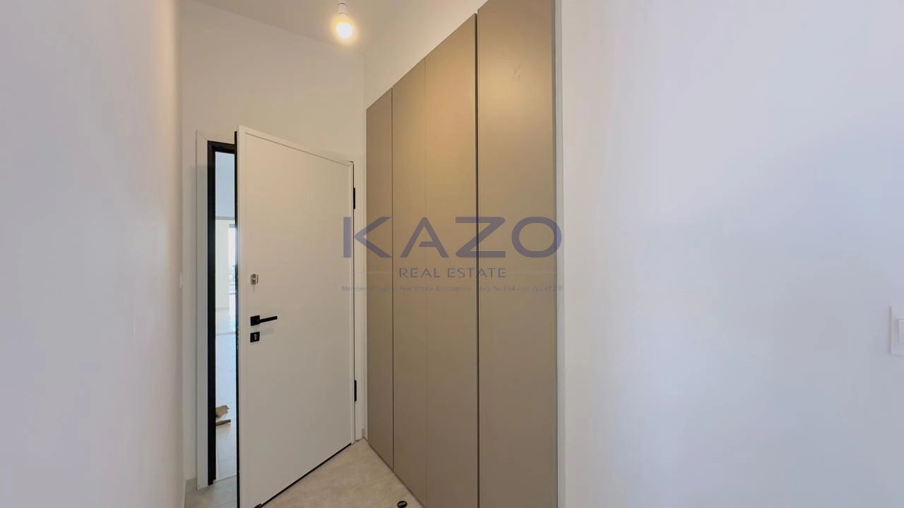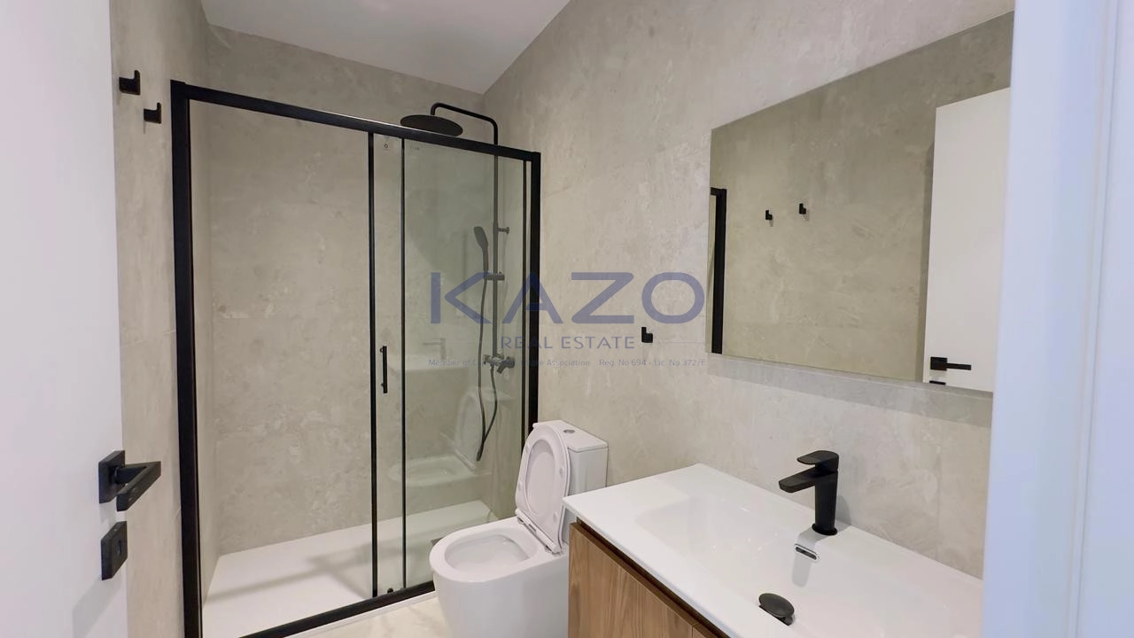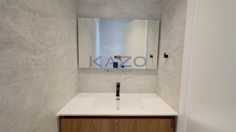 The three-bedroom apartment is located on the first level of a brand-new three-floor residential building estimated to be delivered in September 2025. In particular, the flat consists of an internal area of 125 square meters and an external area of 42 square meters, meaning a cozy open-plan layout living room, dining, and kitchen area, one guest WC, one family bathroom, one ensuite bathroom, and one covered veranda. In addition, the flat is offered with private covered parking with an entrance door with an intercome-controlled, storage room of 6 square meters on the ground level of the building, double-paned windows, a solar water system, and access to the common swimming pool, children’s playground and store rooms