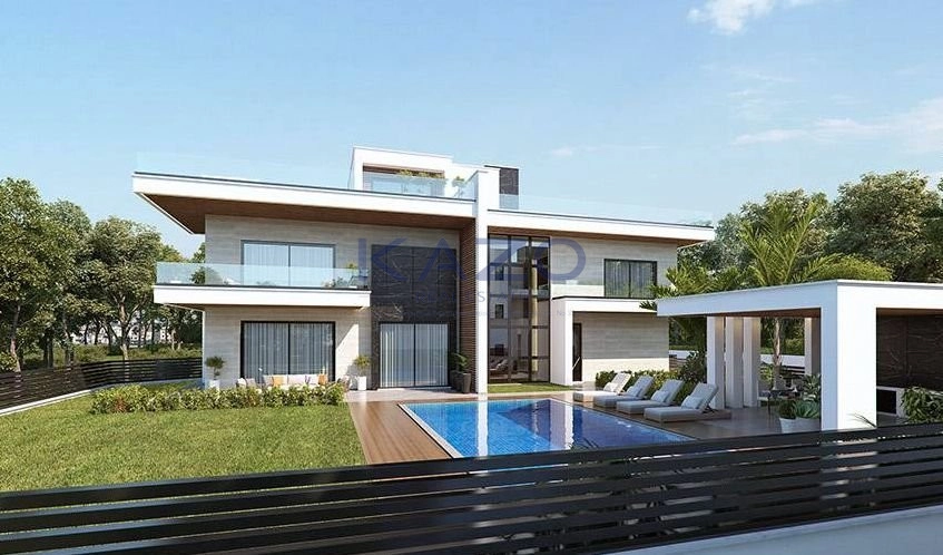 Introducing a state of the art five bedroom villa, available for sale in Agios Tychonas tourist area. The property covers 353 sqm of internal area, 229 sqm basement area, 131 sqm covered veranda, 129 sqm uncovered veranda and 73 sqm roof garden. It is divided into three floors, with the ground floor having two living rooms, a dining room, an open plan kitchen, a bedroom and the guest lavatory, on the basement level there’s a kitchen, a bedroom, a kitchen, two bathrooms and a lavatory,while on the first floor, there are four additional spacious bedrooms, two having an en-suite shower on the one and an en-suite bathroom on the other, and the main bathroom. It comes with two covered parking spaces, a storage unit, a private pool and an in-door elevator.