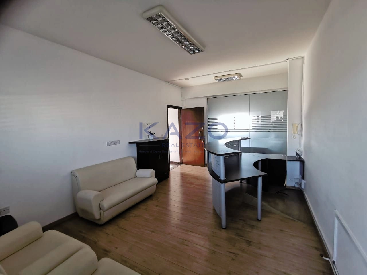 Reception Area: 1 Reception, 1 chair, 1 couch, 2 armchairs, 1 shelve, AC.