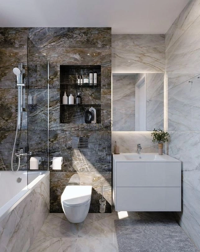 A stylish bathroom is finished with premium fixtures and elegant tiling, combining function with refinement.