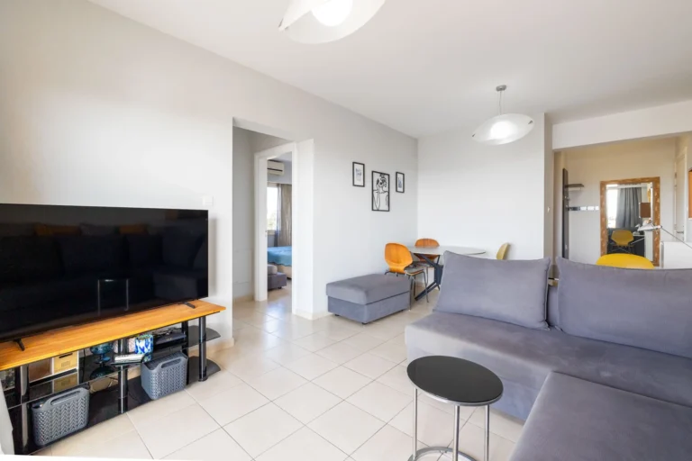 The apartment is located on the 4th floor (top floor) of the building and offers spacious and inviting living areas. The open-plan living and dining area leads to a large balcony with views of the sea, perfect for al fresco dining in the summer. The property comprises two double bedrooms, a family bathroom, and comes fully equipped with appliances, furniture, and air conditioning.