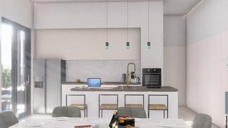 On the Ground there is a large living room and kitchen area, washroom and pantry, a guest toilet and an atrium that allows in natural light. The first floor has 4 bedrooms, two of them with a private bathroom and a dressing room, bedrooms 3 and 4 will share a common bathroom. There is also an office on the upper level with access to another parking space.