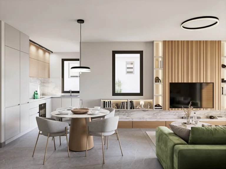 The building consists of 6 flats in total, it is located in a quiet neighborhood and it is surrounded by a great variety of amenities. The project features photovoltaic panels for each flat and the common areas alongside 1 covered parking and 1 storage space. The building will be Energy Efficiency A+ meeting the EU building standards. Additionally, it will have a gated parking space, smart Intercom system and an alarm and camera system for each flat.