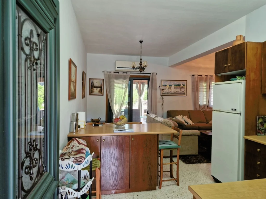 This beautiful three-bedroom house in Mandria village, Limassol, offers a spacious and comfortable living experience. Located in a quiet residential area, it is close to all amenities and provides easy access to the main road, just a 35-minute drive from Limassol. The house features a big garden and access to a common swimming pool. Inside, you'll find a large and comfortable living and dining room with an ergonomic fireplace, an open-plan kitchen equipped with all electrical appliances, and a guest toilet. The three bedrooms are of good size, with the master bedroom including a bathroom. The property comes fully furnished and air-conditioned, ensuring a pleasant living environment. Outside, the house boasts a large garden, two covered parking spaces, a pergola, a BBQ area, and access to a common swimming pool. Contact us for more information and to arrange a viewing.