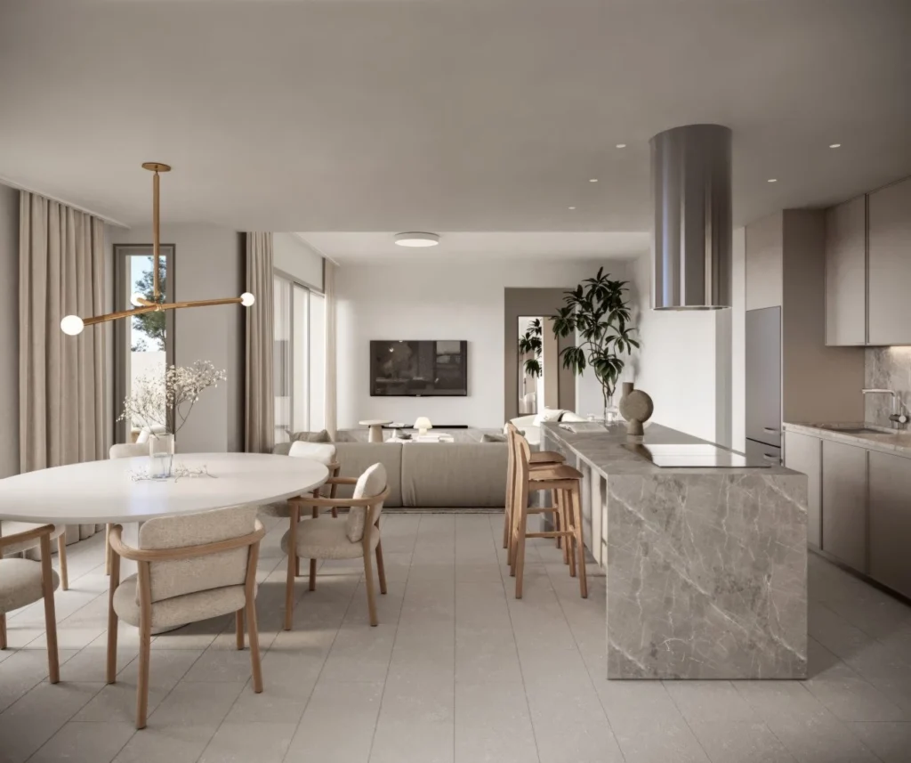 This exquisite 3-bedroom villa at Coral Vista elegantly merges modern design with timeless Cypriot heritage. Thoughtfully crafted to offer seamless open-plan living, the villa harmoniously blends traditional materials with contemporary aesthetics, providing a serene retreat that celebrates both style and cultural character. Details: 3 spacious bedrooms 2 well-appointed bathrooms Total covered area of 150 square meters Seamless open-plan living layout Private garden with ample space for relaxation Optional private swimming pool Use of traditional materials like stone, timber, and marble Coral Vista Private Residences offer an exceptional lifestyle in Peyia, perched on a hilltop with panoramic views of the Mediterranean countryside and sea. This exclusive development features nineteen villas, each thoughtfully oriented to maximize these stunning vistas. Available in three distinct styles, these airy and open villas blend traditional materials with a modern edge, creating timeless designs that fully embrace their spectacular setting. Each villa includes a private garden with ample space for a swimming pool, large windows that blur the boundaries between indoors and outdoors, and expansive terraces ideal for al fresco living. The interiors are finished to the highest standards, featuring marble, parquet, and high-gloss kitchens, all in a natural yet contemporary palette that complements the architectural design.