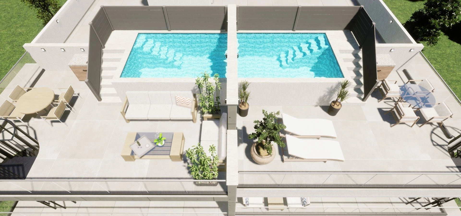 The featured apartment is a top-floor two-bedroom unit with a roof garden, offering an internal area of 82 sqm and a 33.7 sqm covered veranda. The roof garden spans 42.5 sqm and includes a private pool with breathtaking views. The apartment also comes with covered parking and a storage room. Inside, you will find an open-plan kitchen with a living and dining area, a main bathroom with a shower, a master bedroom with an en-suite bathroom, and another spacious bedroom. The living room opens to a large veranda through expansive sliding windows, and a spiral staircase provides access to the stunning roof garden.