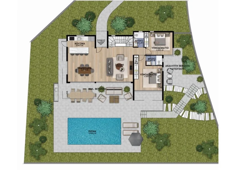 The villas are designed for seamless indoor-outdoor living and boast all amenities including a custom swimming pool and a covered outdoor dining area.