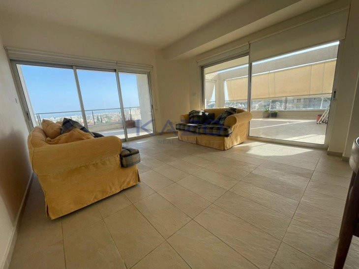 This top-floor resale apartment covers an area of 196 square meters and comes with a large covered balcony, and it is situated in the Agia Fyla area just two minutes from the highway and easy access to Limassol Center.