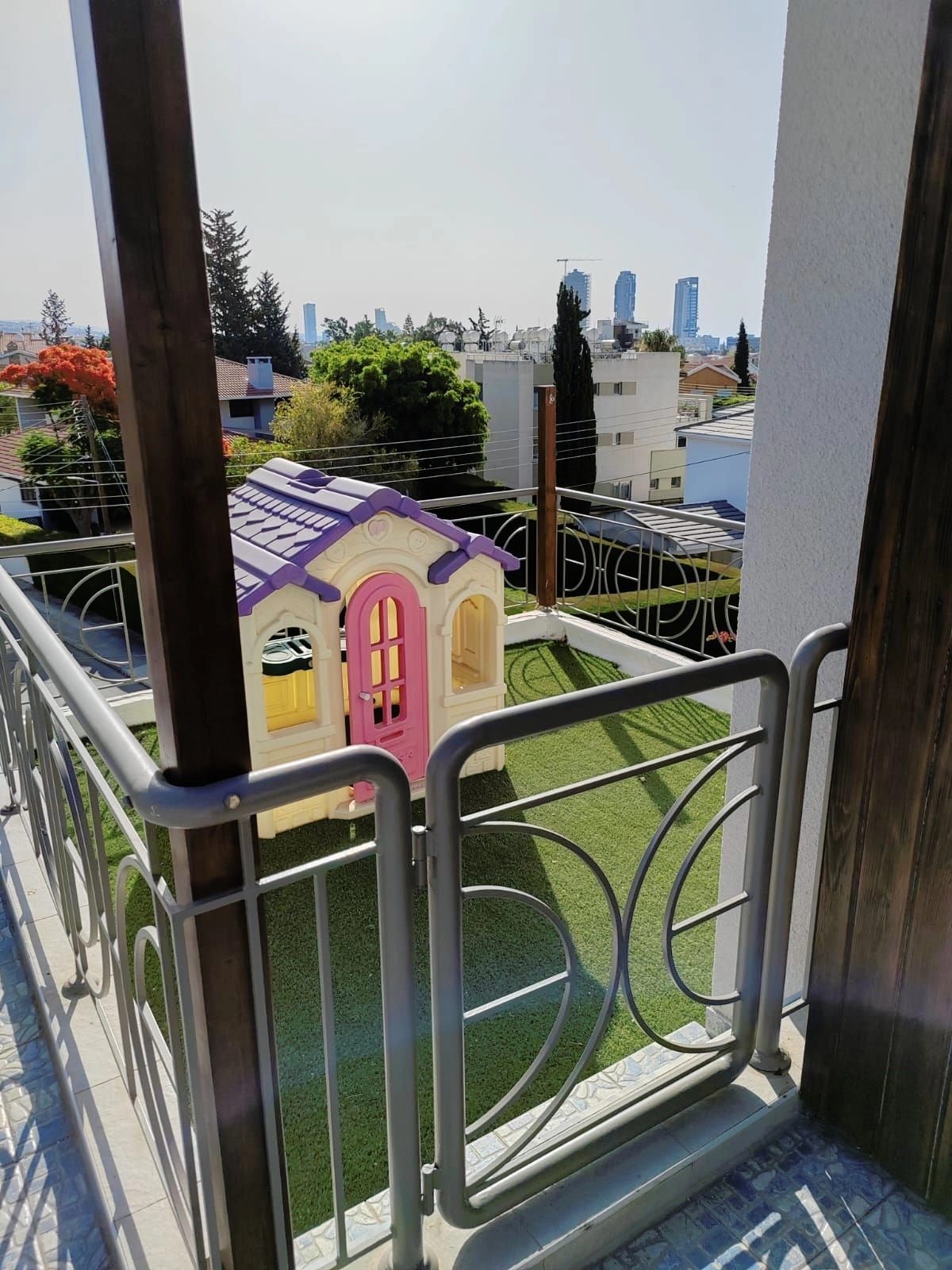 This is a very unique four bedroom, 3 bathroom apartment on the second floor of a two story house with a large private parking, roof garden and fire place. The apartment is fully renovated, furnished and equipped with all appliances, decor and accessories. It is approximately 160m2 covered area and about 80m2 verandas, roof garden, play area and barbecue. It is located in the much sought out area of Columbia, Limassol and close to all amenities with easy access to highway, Town Centre and the beach.