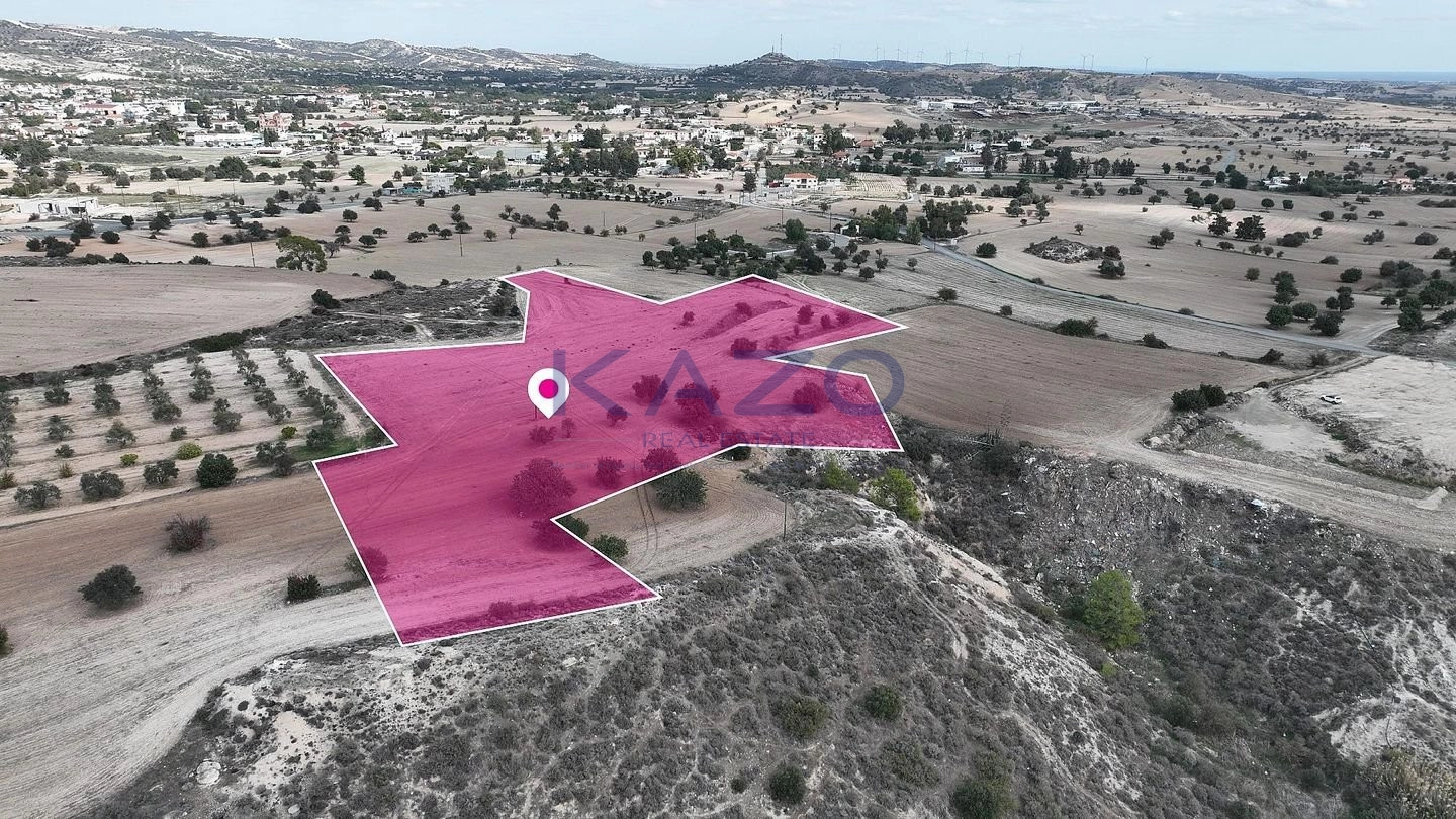 Residential field, extending to about 14,716 sq.m. in total, located in Anglisides, Larnaca. The asset is located about 470m east of the main road connecting Aplanda and Anafotida communities, approximately 1km from B5 motorway and about 585m southwest of Agglisides Primary School. The property falls within Zone H3, with a building coefficient of 60%, coverage of 35%, and permission for 2 floors (8.3m) of construction.
