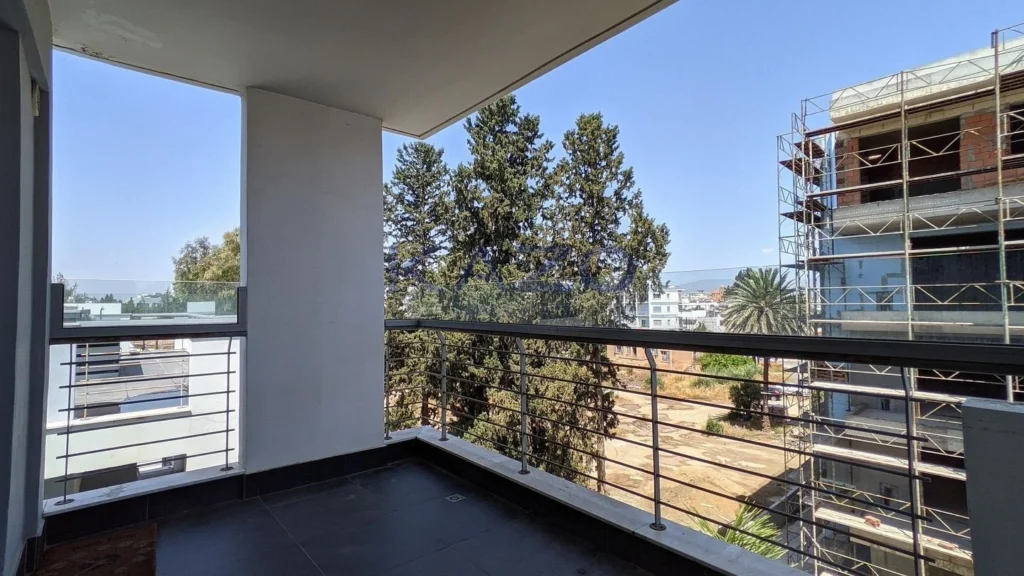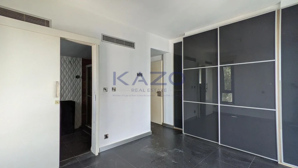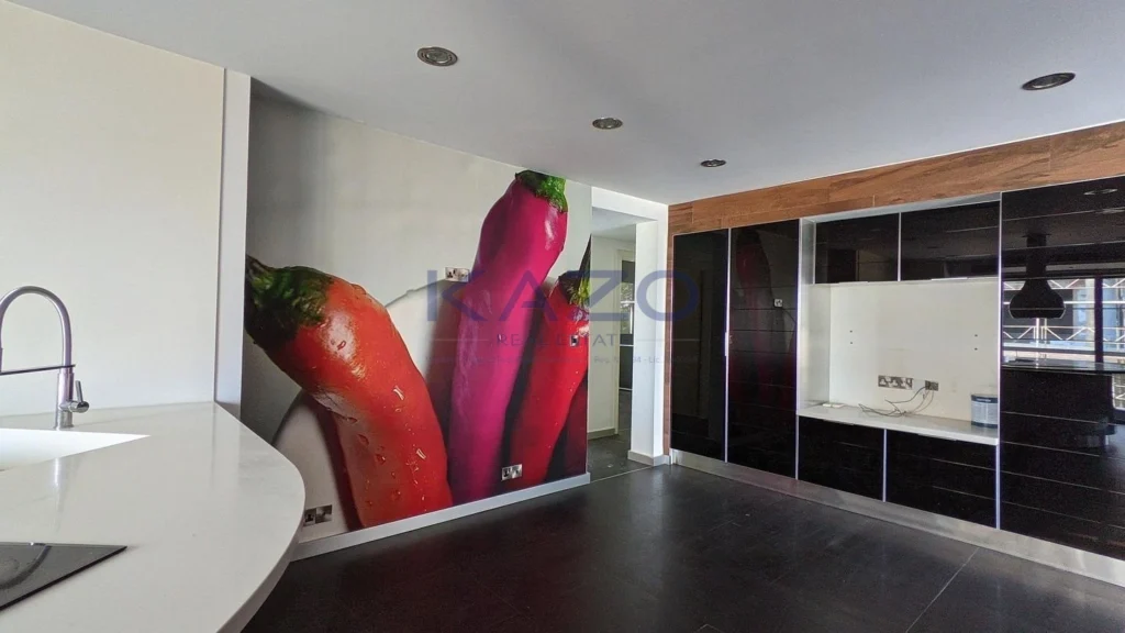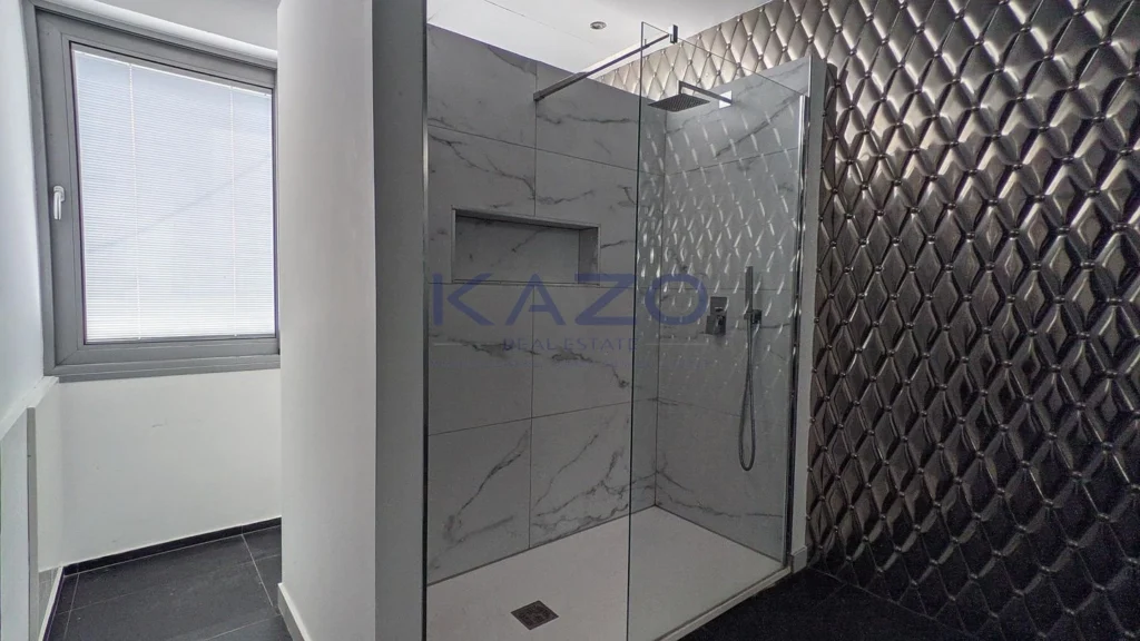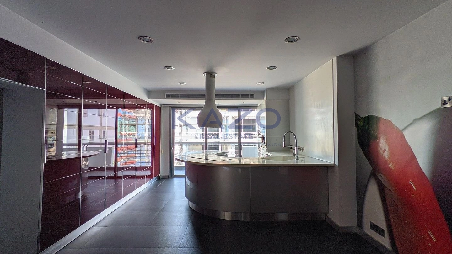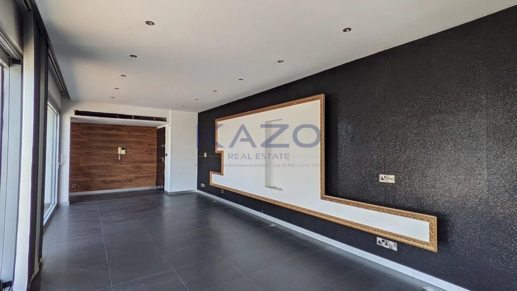 Top-floor three bedroom apartment on a 3 storey building, in Engomi, Nicosia. The apartment comprises of an open plan area with entrance/ living room/dining room area, a guest toilet, kitchen with sitting room, three bedrooms, (master bedroom with an en suite bathroom) and a family bathroom. Furthermore it offers a covered terrace and a big uncovered terrace/patio with a bar of approximately 91 sq.m. It is located approximately 750m from B9 motorway, approximately 1km from Agios Dometios community centre and approximately 3km from Engomi community center. The property falls within Zone Κα4, with a building coefficient of 120%, coverage of 50%, and permission for 3 floors (13.5m) of construction. There is a separate title deed for this property. Energy Category: E