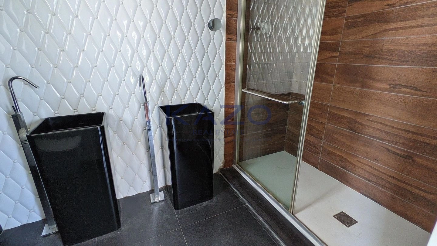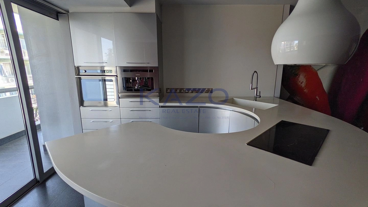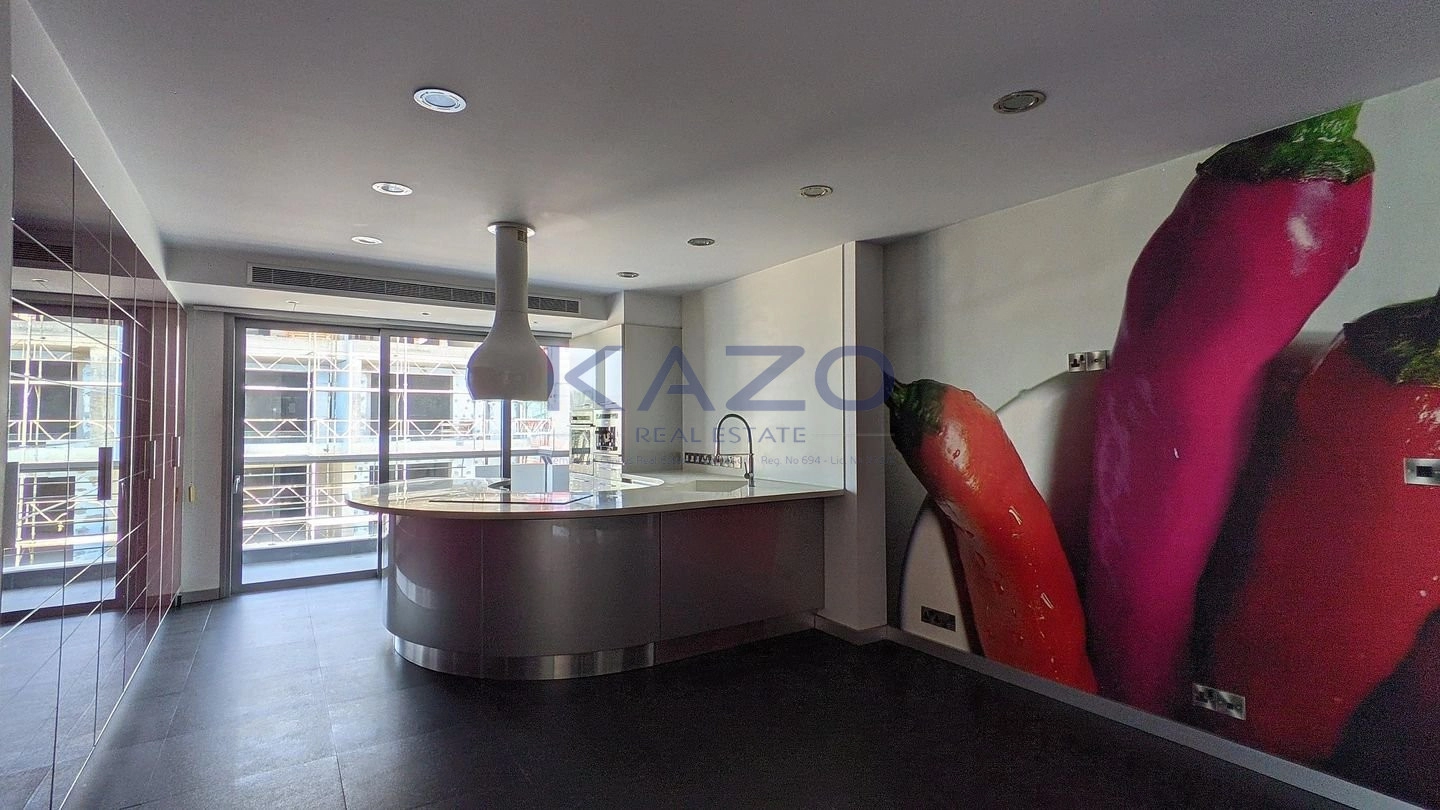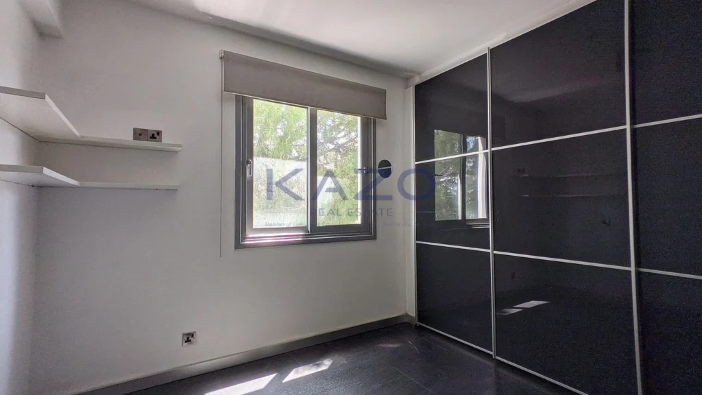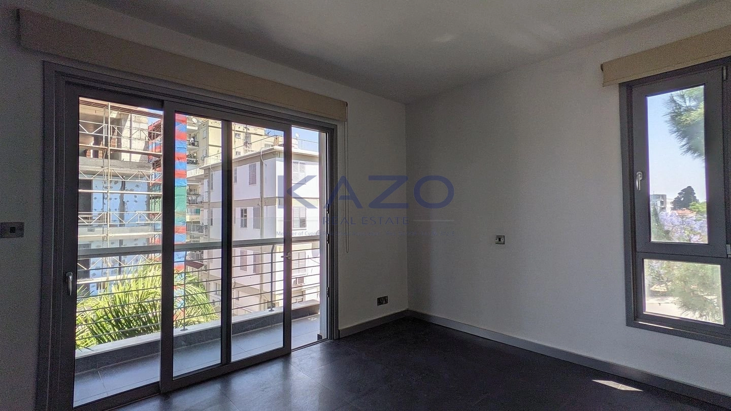 Top-floor three bedroom apartment on a 3 storey building, in Engomi, Nicosia. The apartment comprises of an open plan area with entrance/ living room/dining room area, a guest toilet, kitchen with sitting room, three bedrooms, (master bedroom with an en suite bathroom) and a family bathroom. Furthermore it offers a covered terrace and a big uncovered terrace/patio with a bar of approximately 91 sq.m. It is located approximately 750m from B9 motorway, approximately 1km from Agios Dometios community centre and approximately 3km from Engomi community center. The property falls within Zone Κα4, with a building coefficient of 120%, coverage of 50%, and permission for 3 floors (13.5m) of construction. There is a separate title deed for this property. Energy Category: E
