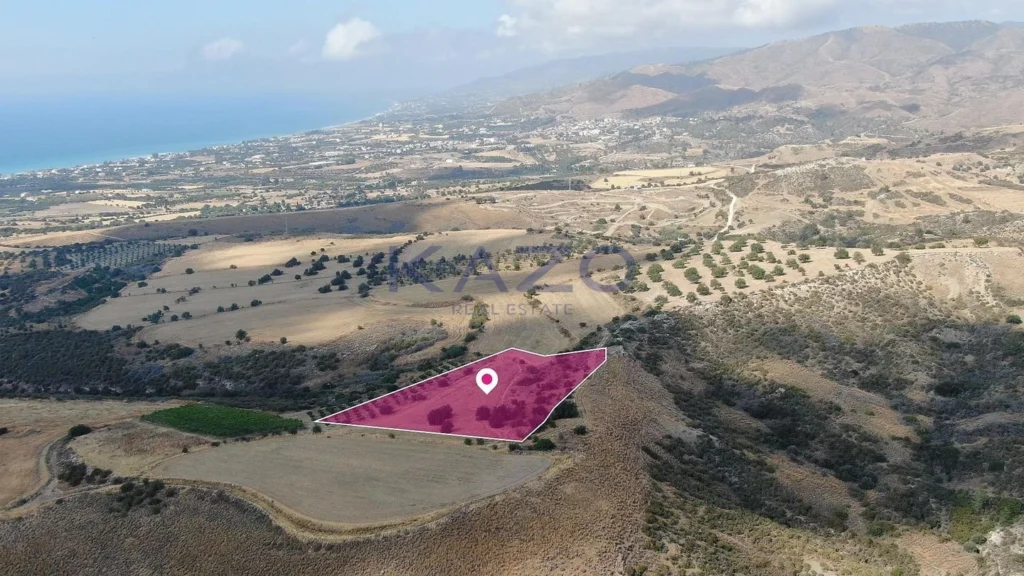Agricultural field, extending to about 8,529 sq.m. in total and is located in Pelathousa, Paphos. The property has a rectangular shape. This is a landlocked asset, meaning that it does not have access via registered roads. However, the asset is accessible via unregistered dirt roads. The asset is located approximately 3.2km from the motorway and approximately 4.8km from Polis Crysochous The property falls within Zone Γα4, with a building coefficient of 10%, coverage of 10%, and permission for 2 floors (7m) of construction. There is a separate title deed for this property. Locations Coordinates: 35.041460 32.472437