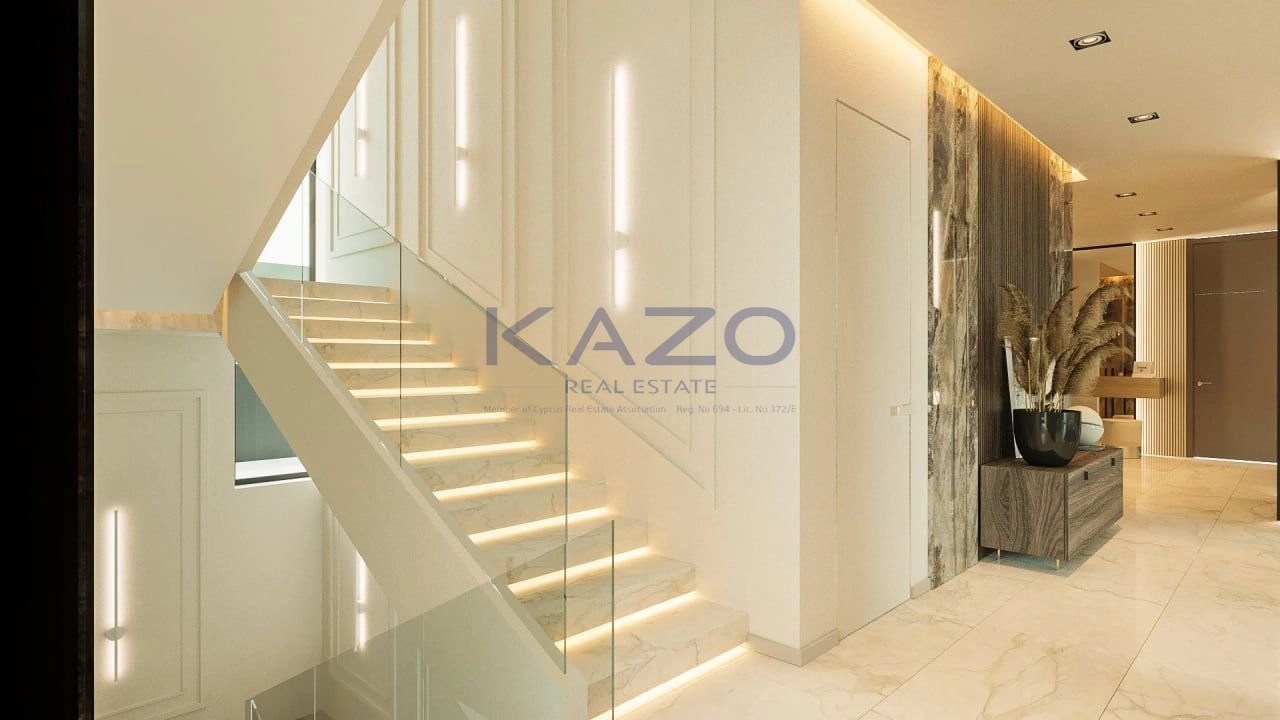 Discover a unique four bedroom villa, available for sale in Agios Tychonas. The property covers 192 sqm internal area with 31 sqm covered veranda. The house comprises of two floors, with the ground level having the living room and an open plan kitchen and a guest lavatory, while on the first floor there’s four bedrooms, with two en-suite showers and the main shower room. The property sits on a 600 sqm plot and comes with two covered parking spaces and a storage unit as well as a private pool.