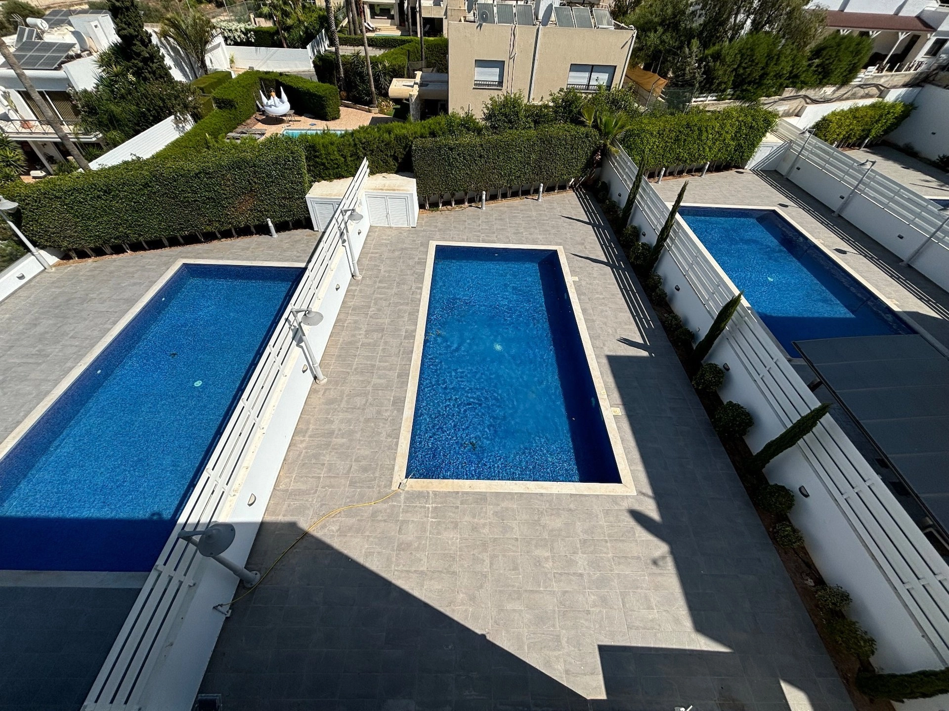 On the rooftop, residents can enjoy a relaxing jacuzzi while taking in panoramic views of the sea and surrounding area. The property also includes a large swimming pool in the garden, perfect for cooling off on hot summer days.