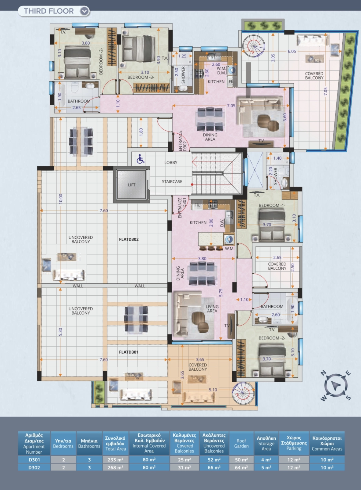 This Residences Block D’ has been fully designed and studied by our professional team of Architects, Engineers and Interior Designers. The modern design makes excellent use of features like top quality italian ceramic finish, unique glass balconies and clever layout of living areas designed to offer optional space, privacy and also a views of the prestigious neighbourhood and Famous Larnaca Salt Lake.