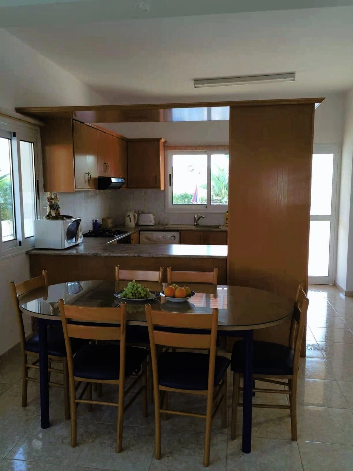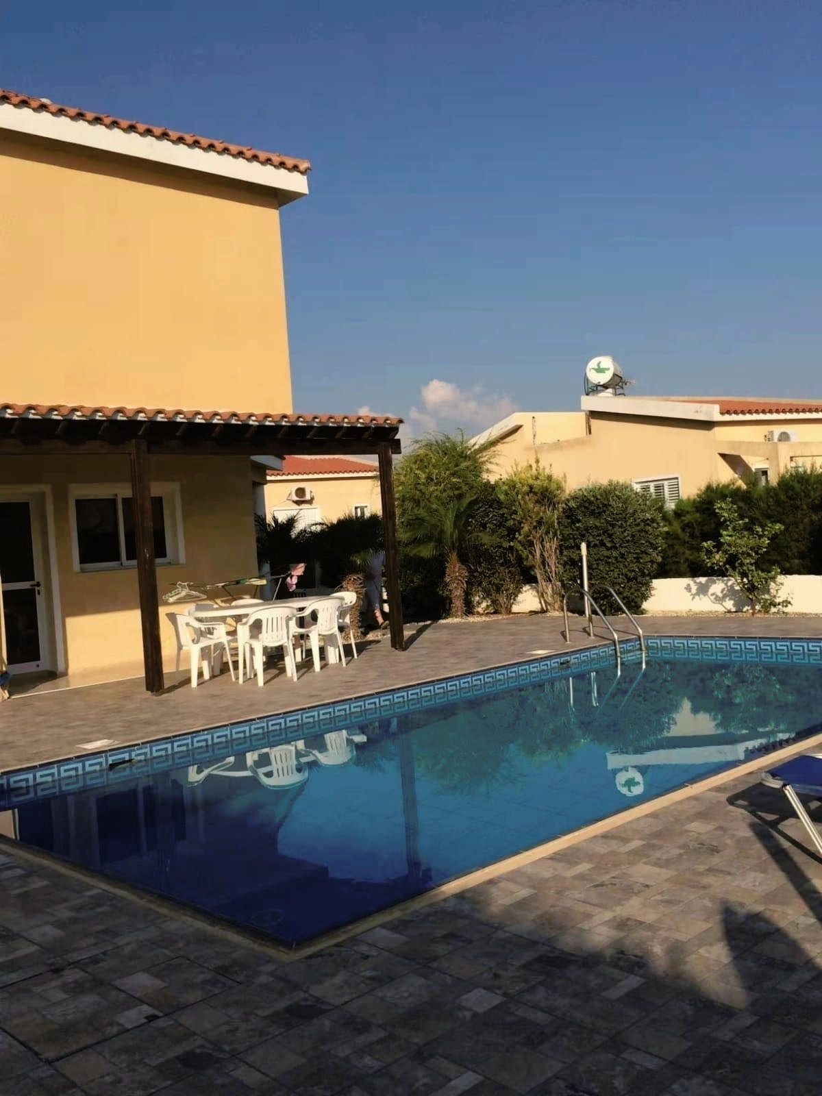 Discover this inviting detached house situated on a quiet dead end road in Lower Pegeia, offering both privacy and convenience. The property boasts a generous land area, featuring a private swimming pool perfect for relaxation and enternataining. The home includes a ground floor bedroom, ideal for guests or multi -generational living. Upstairs , you will find two additional bedrooms ,each with its own en suite bathroom for added comfort and privacy. The layout combines functionality with a touch of elegance , providing cozy and practical living space.