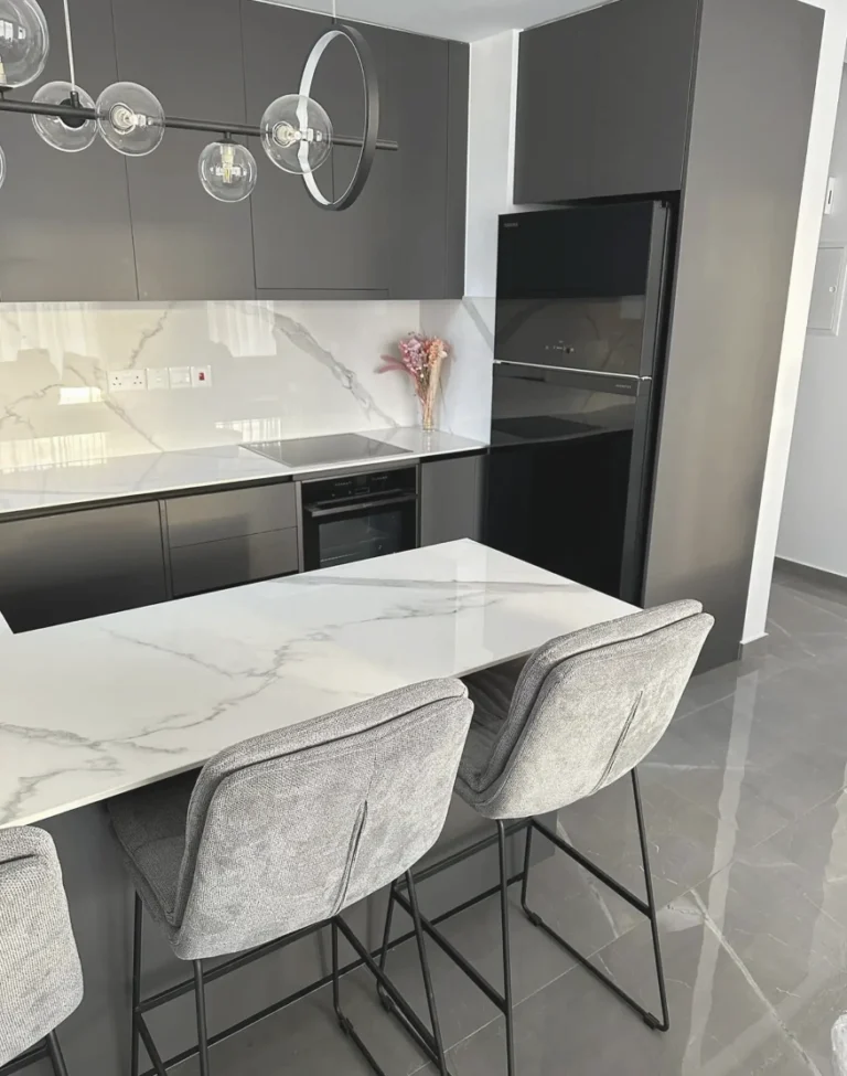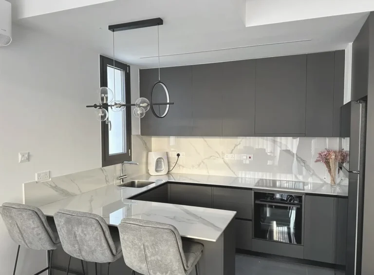 Ultra-modern, Two-Bedroom Apartment, with common swimming pool for sale in Makenzy area, Larnaca. The building is very uniquely designed, brand new and only 500 meters from the beach. Within walking distance to the promenade, the fishing marina and Larnaca Centre.
